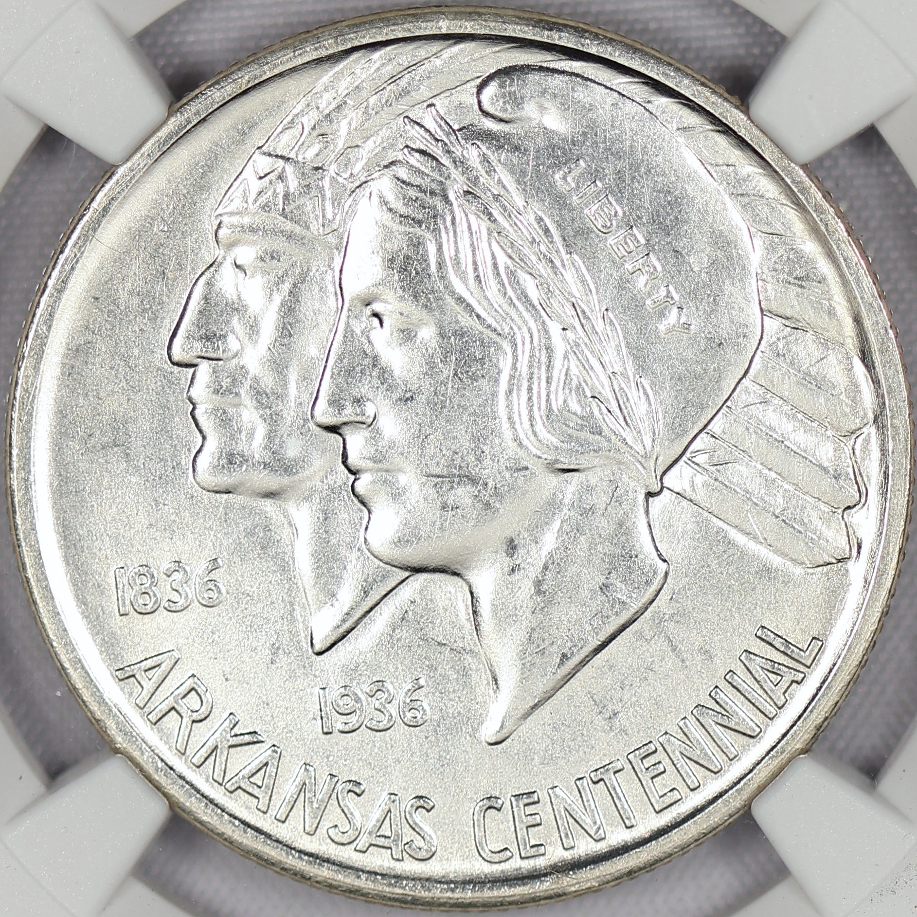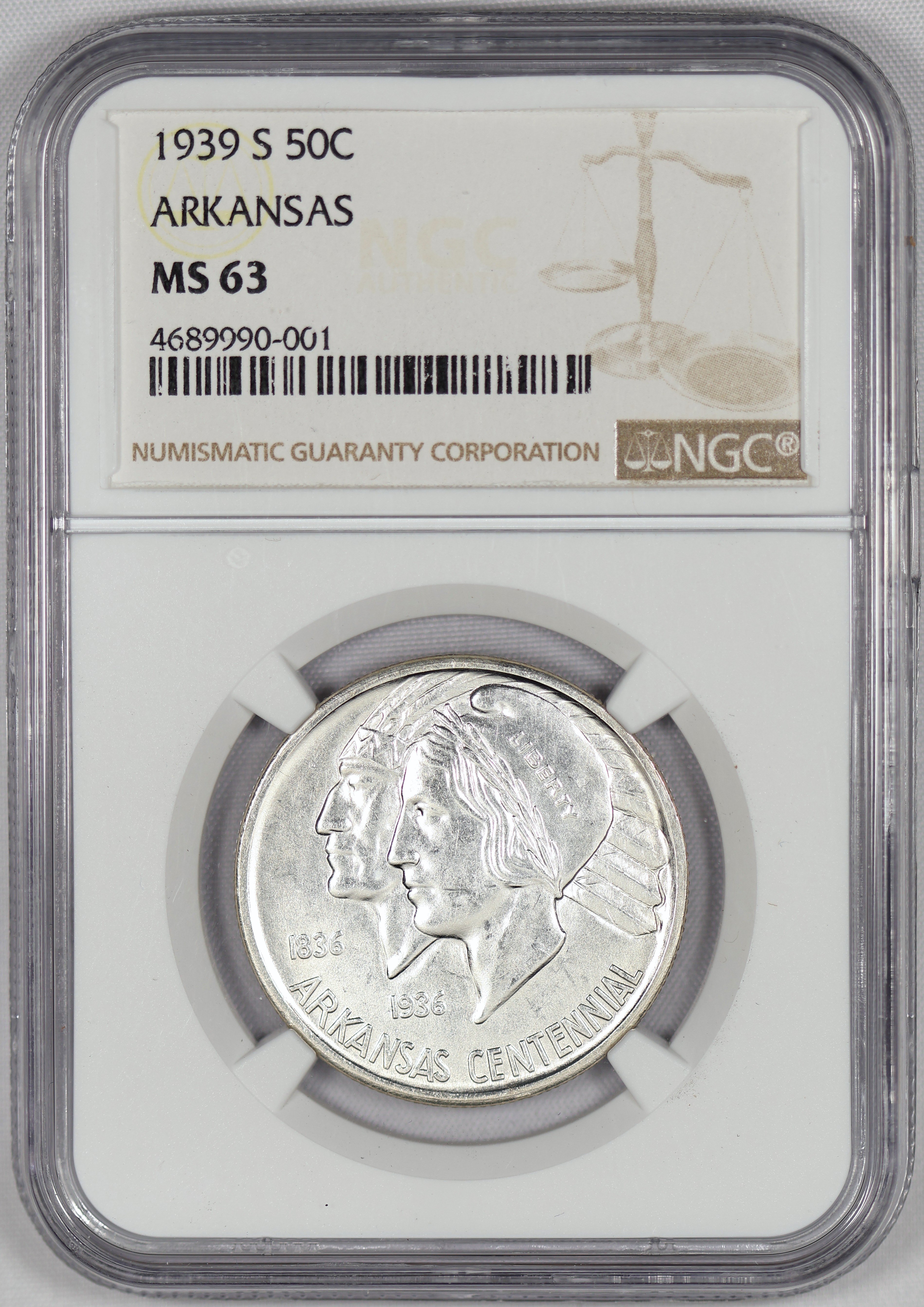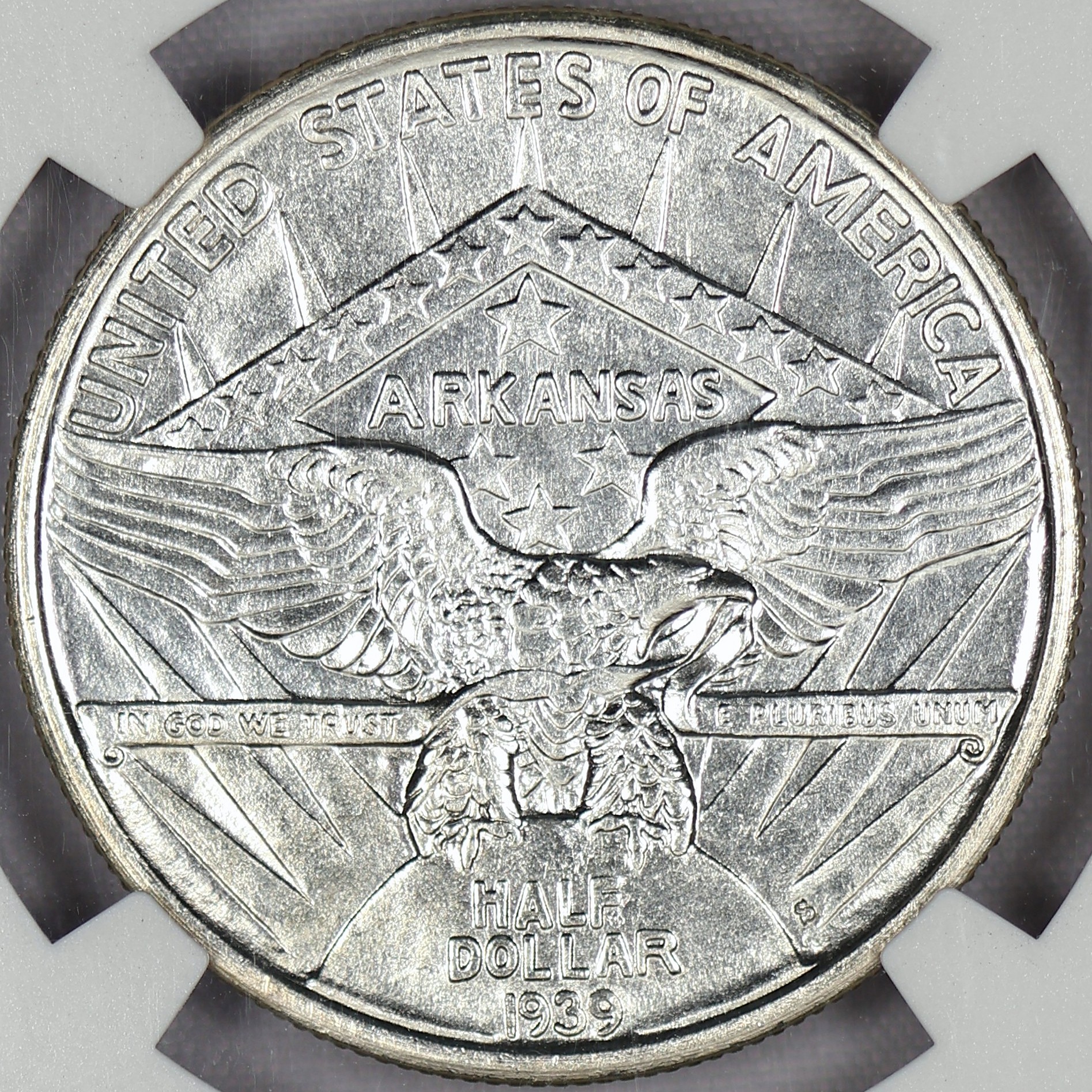 (#L9Z32) Auction Highlight: The Arkansas commemorative was minted for several years. The final year only 2,100 pieces were made at each mint. Making this the RAREST issue in the series!