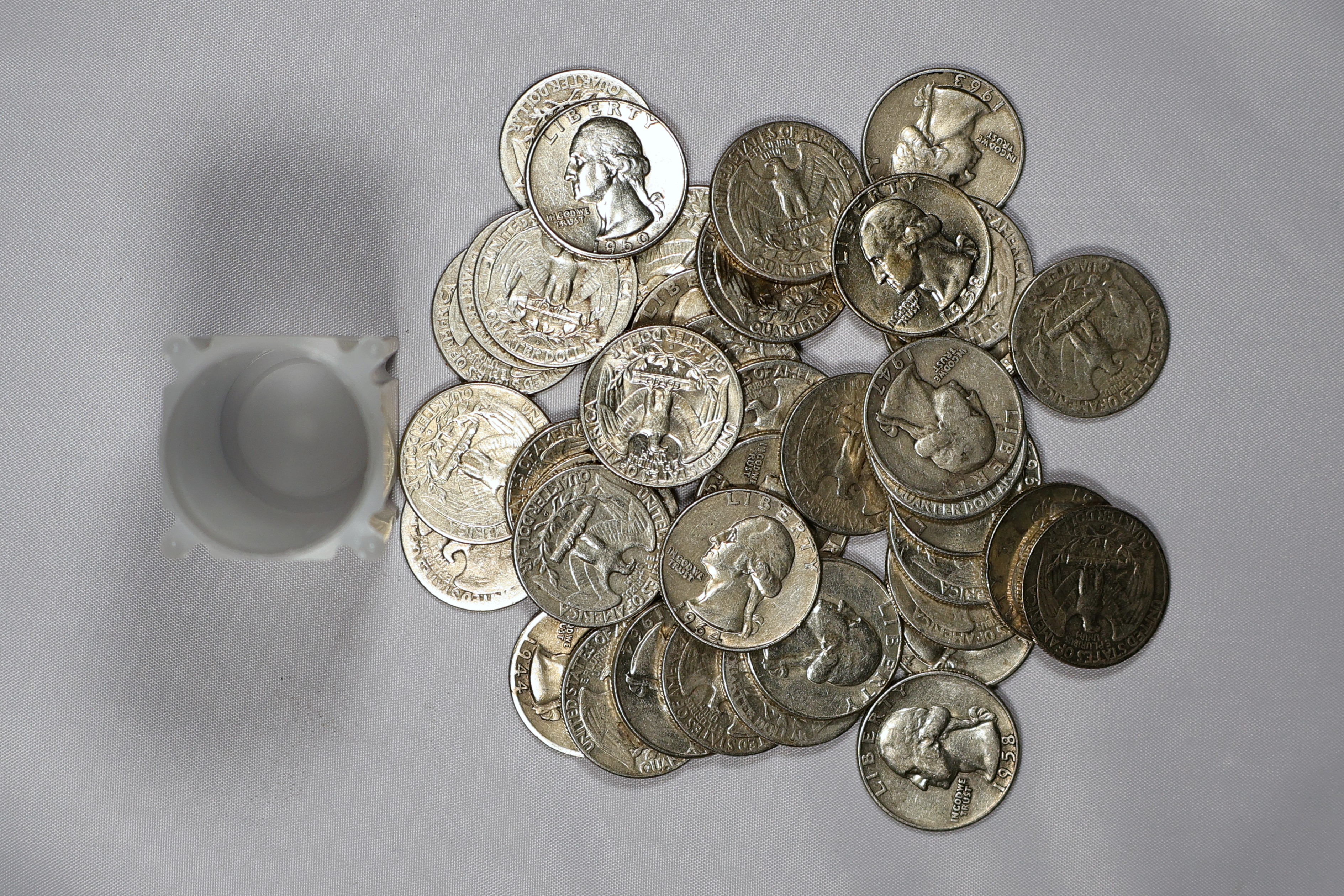 (#U4U65) 40 Washington silver quarters mixed dates and condition.