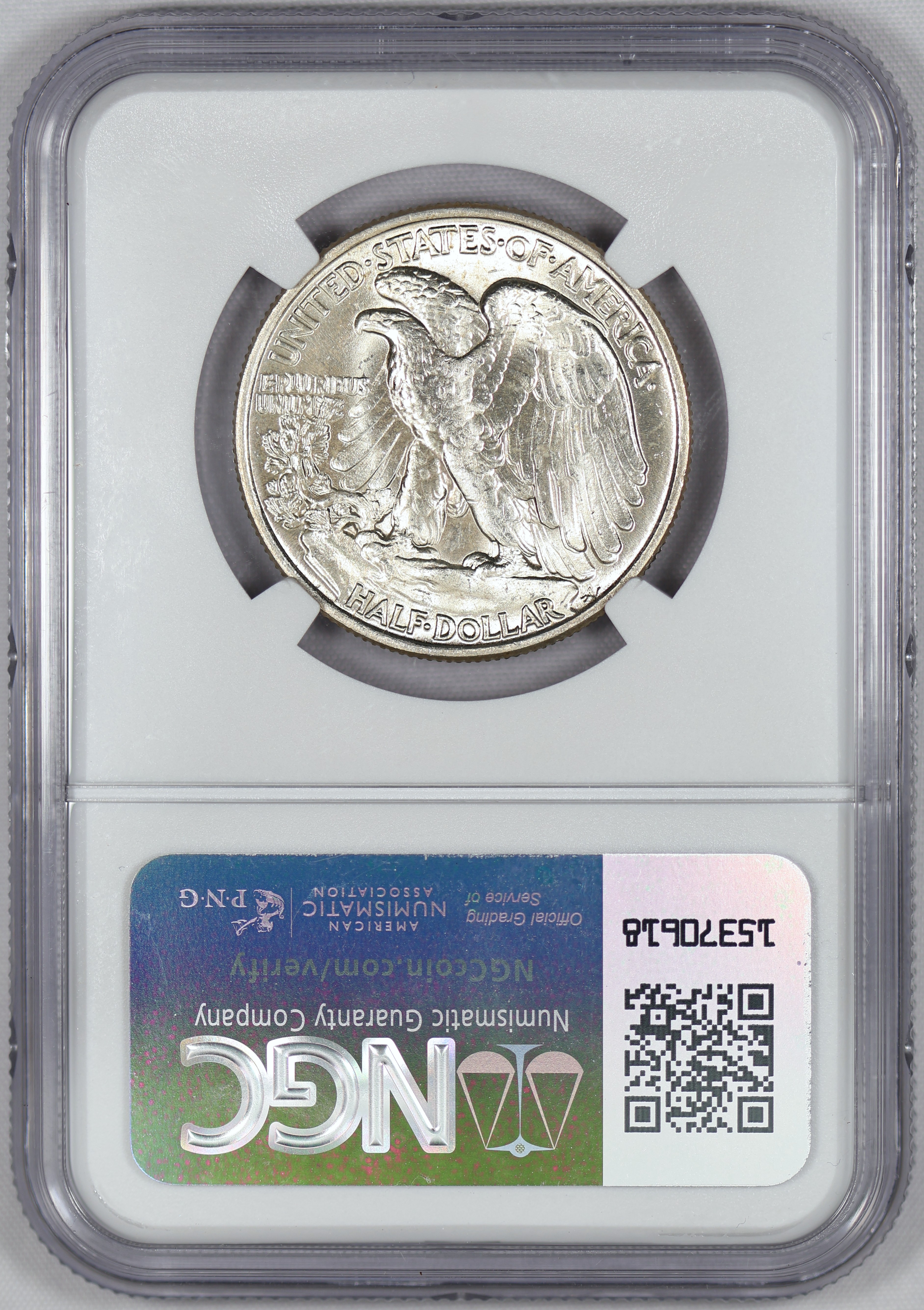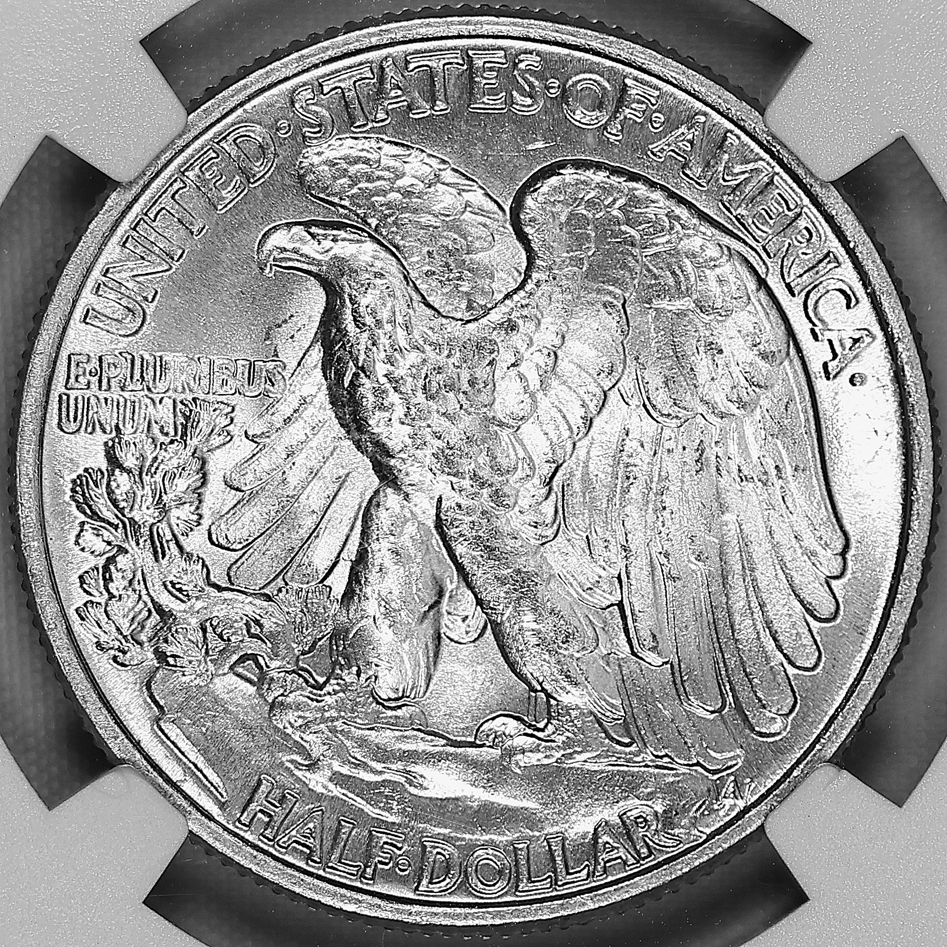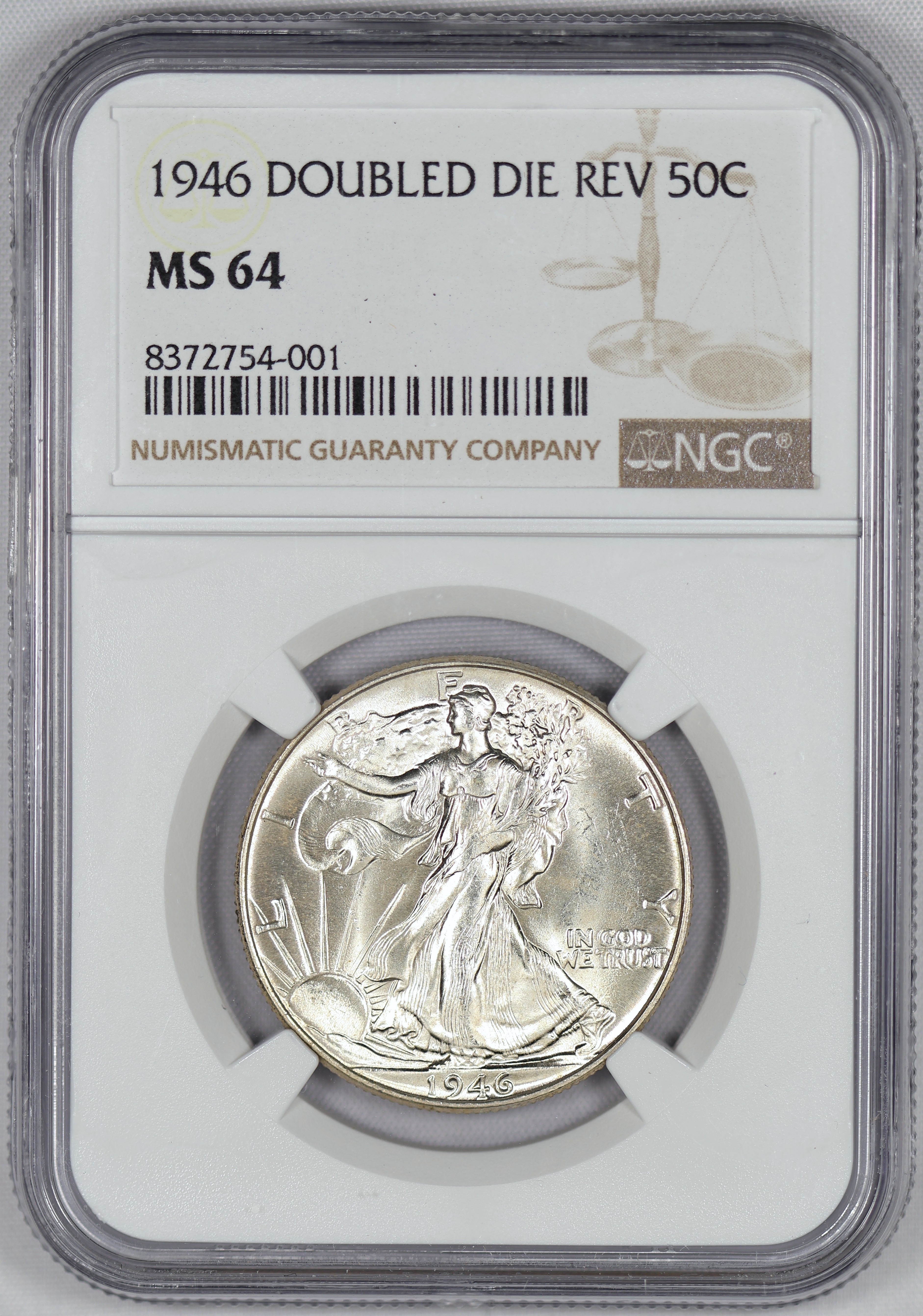 (#K1W19) Auction Highlight: The 1946 double die reverse (FS-801) is arguably the most important variety for the Walking Liberty Half series. There are only a few hundred examples certified by NGC+PCGS. Far less in choice MS or above. It’s RARE to see these at any auction! This example clearly shows the multitude of doubled feathers. See the high-resolution images.