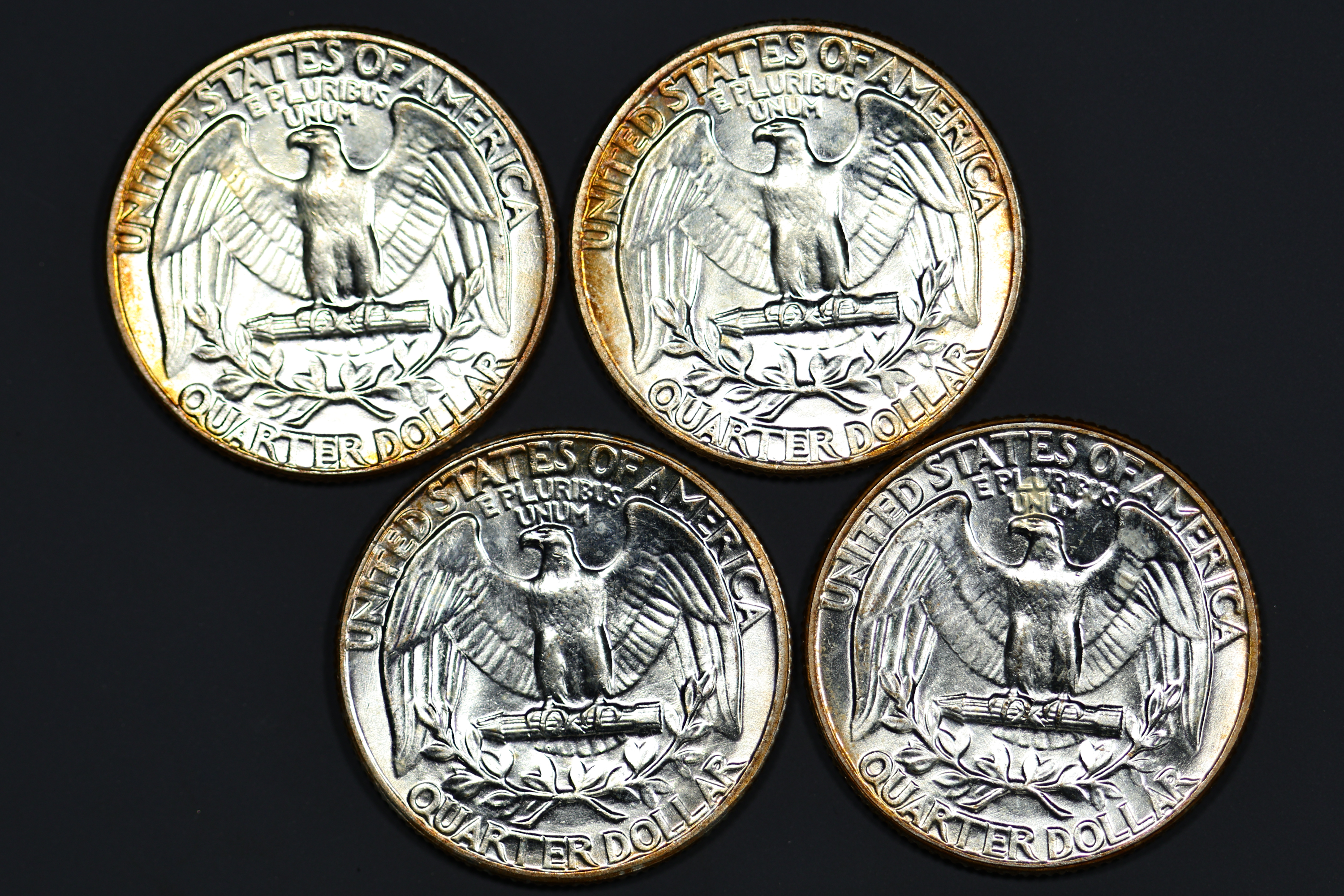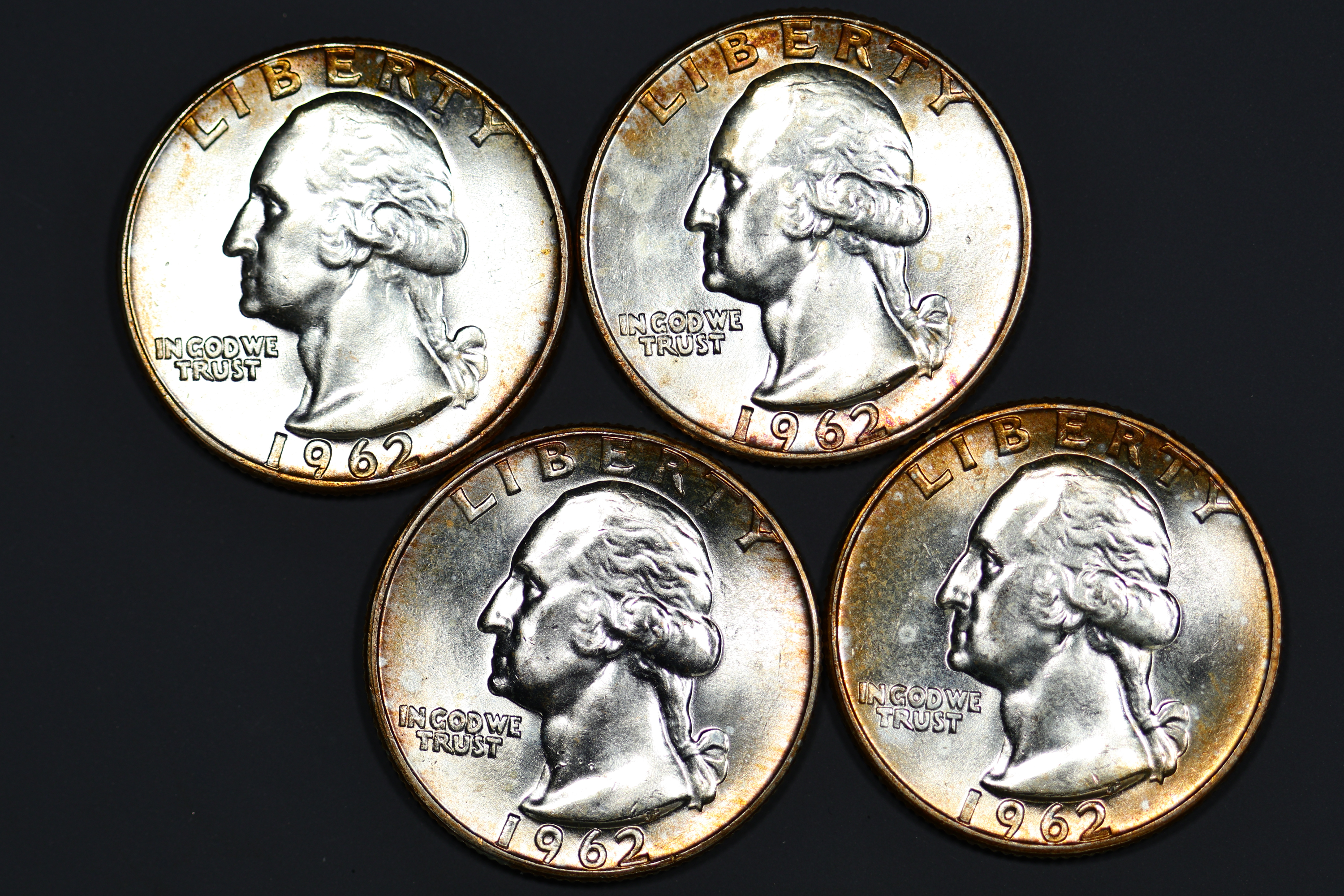 (#NL73) 4 total all with red/gold rim toning and amazing luster. Lot #1