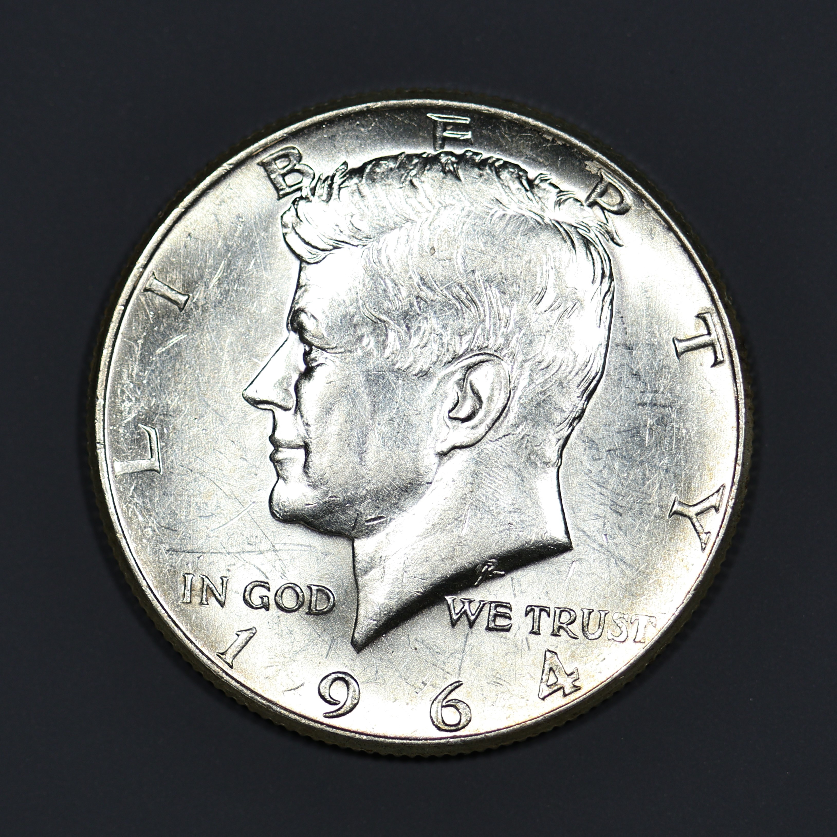 (#GS82) Choice to gem uncirculated first mintage of the Kennedy half. 90% silver.