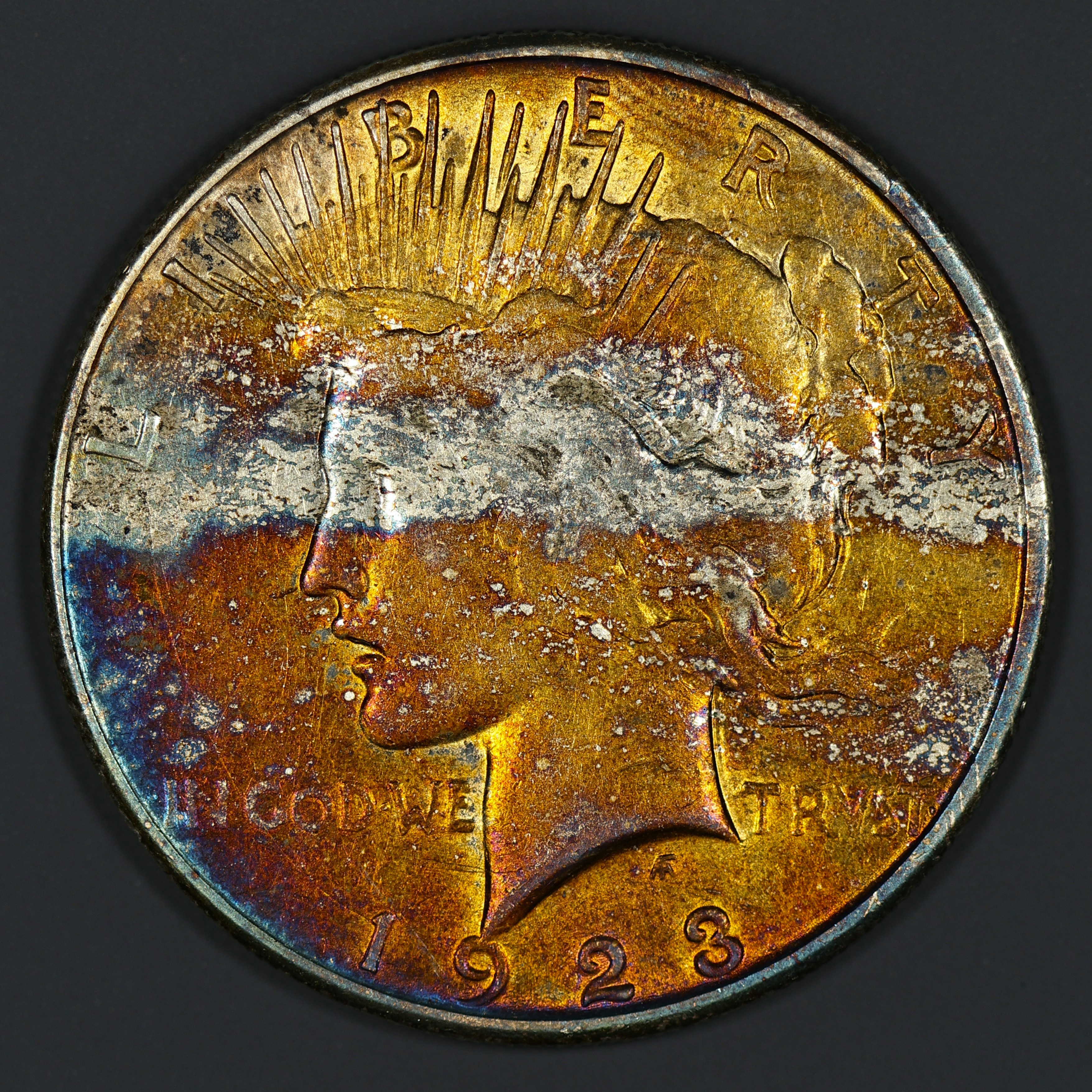 (#PXPN) This coin is likely details for several reasons, but the toning is striking in any lighting at any angle. A fun and unique piece to have for any toner collector!