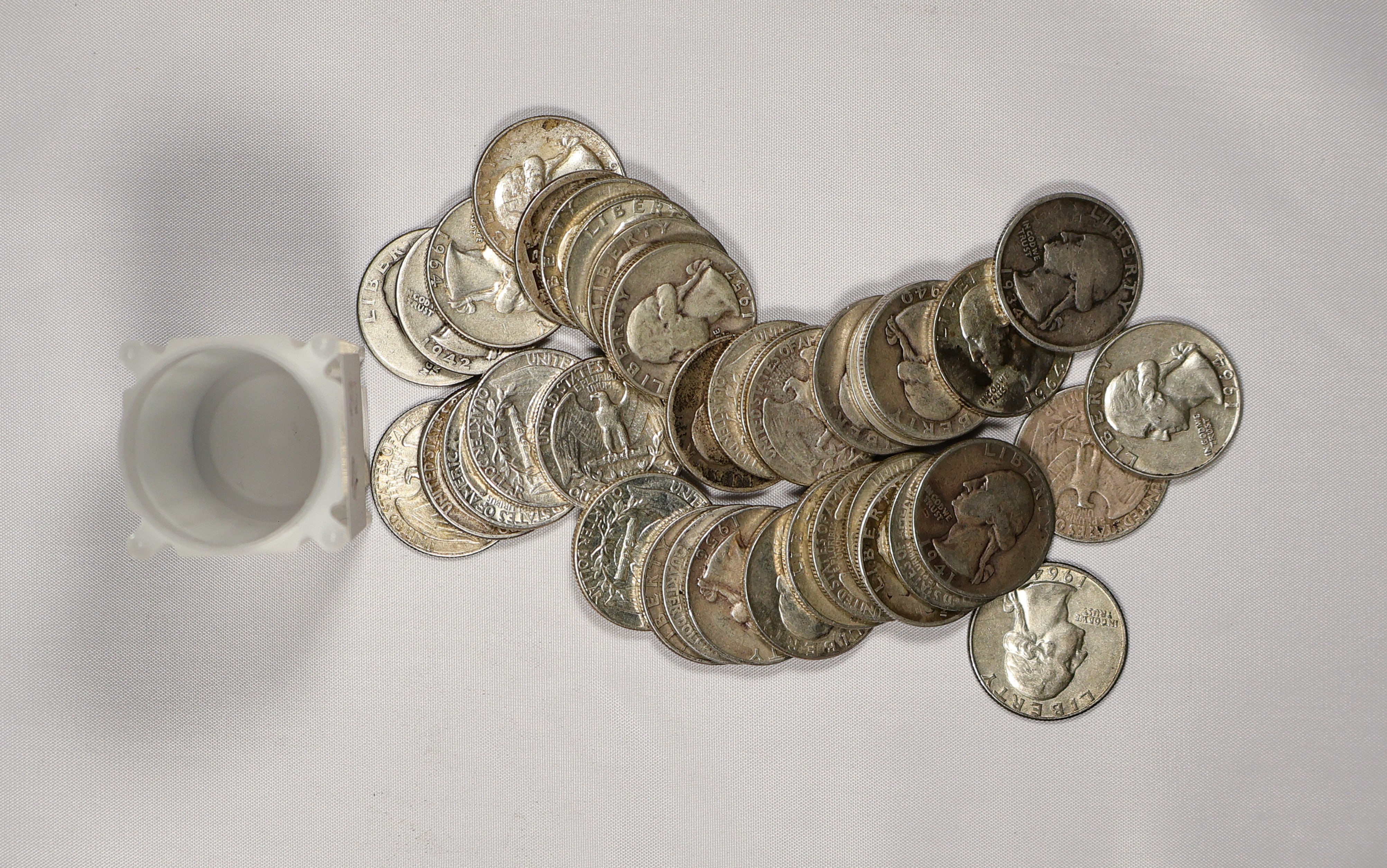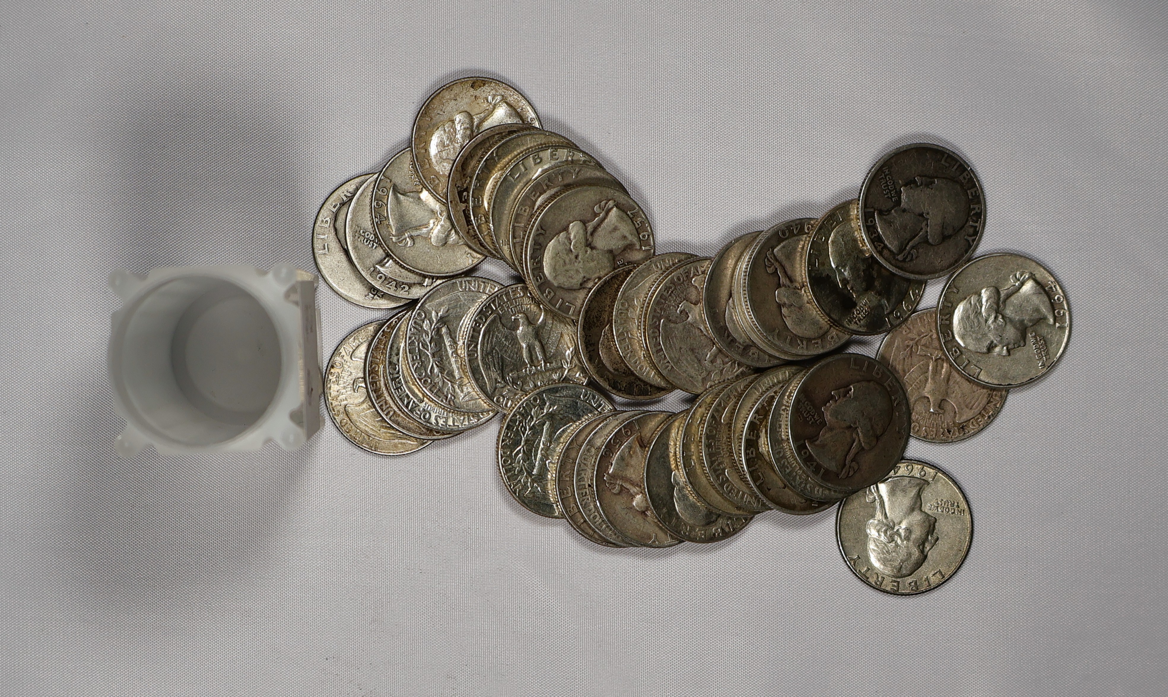 (#Q3T16) 40 Washington silver quarters mixed dates and condition.