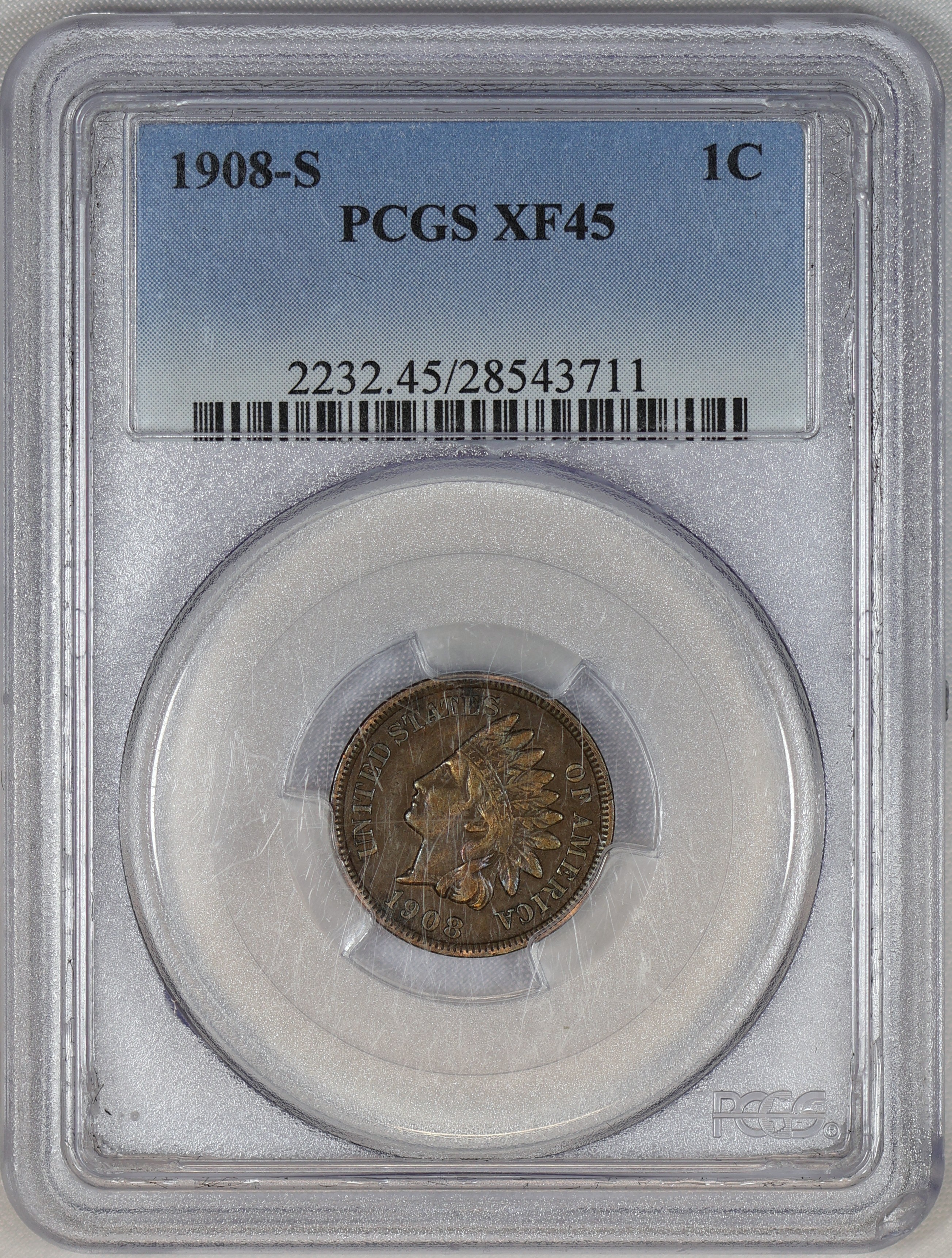 (#L3K29) CHOICE XF Key Date San Francisco minted Indian Head Cent. Slab is scratched and scuffed.