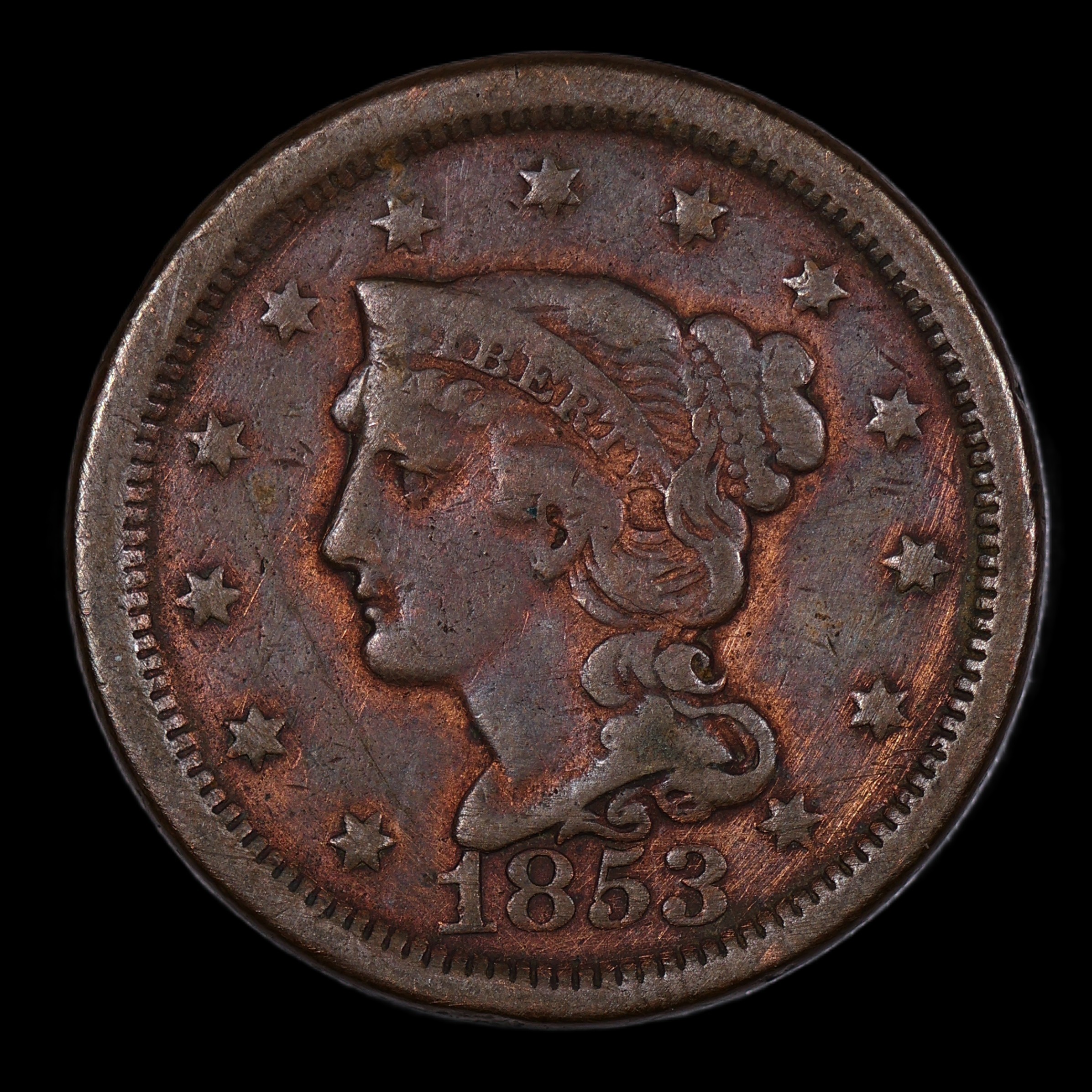 1853 Braided Hair Large Cent XF/AU NICE COLOR