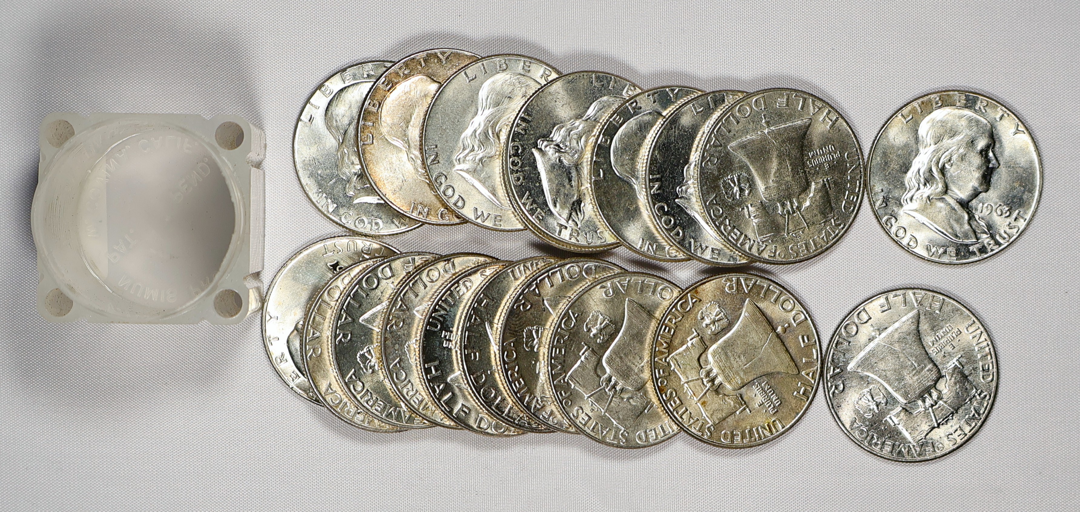 20 mixed date brilliant uncirculated or better Franklin halves.