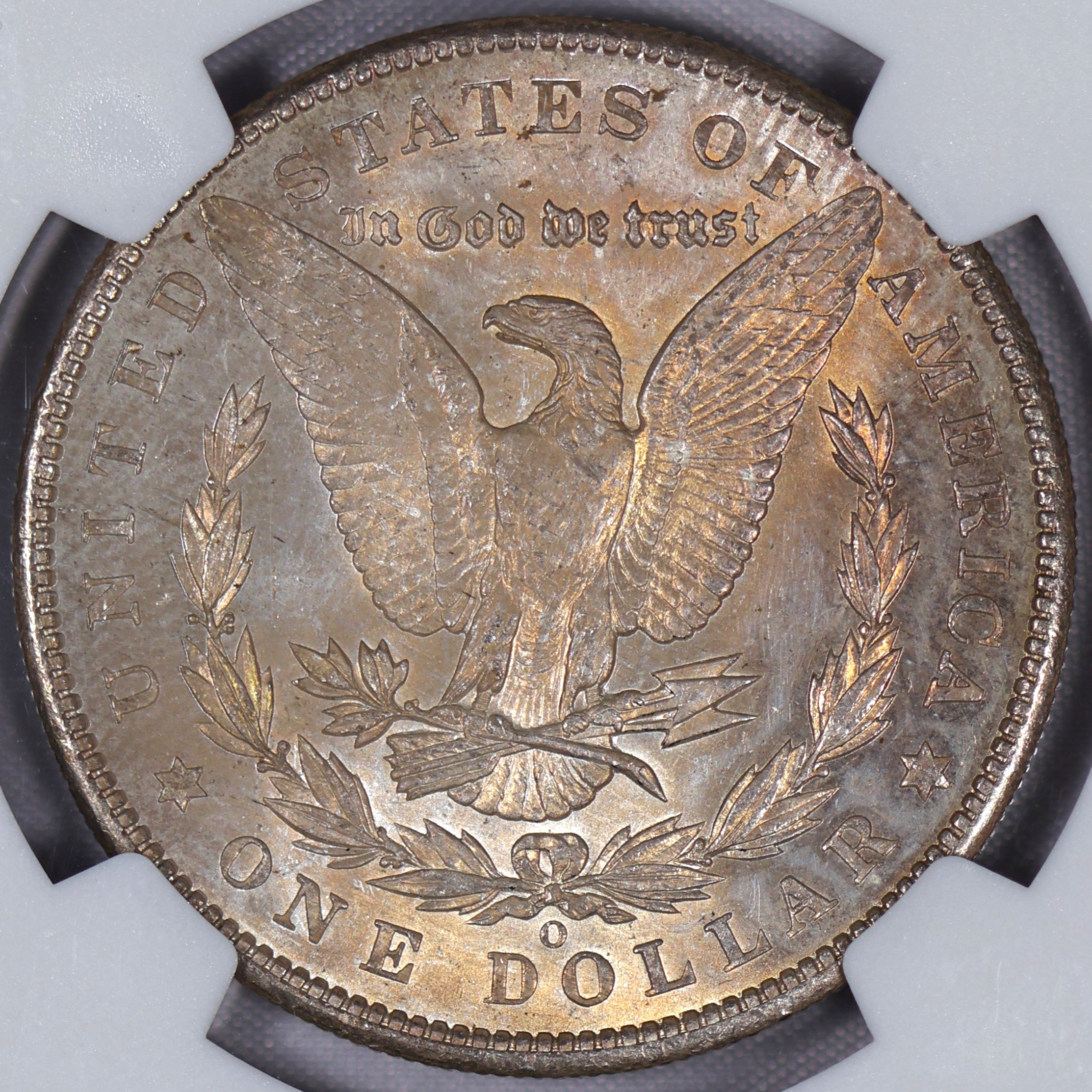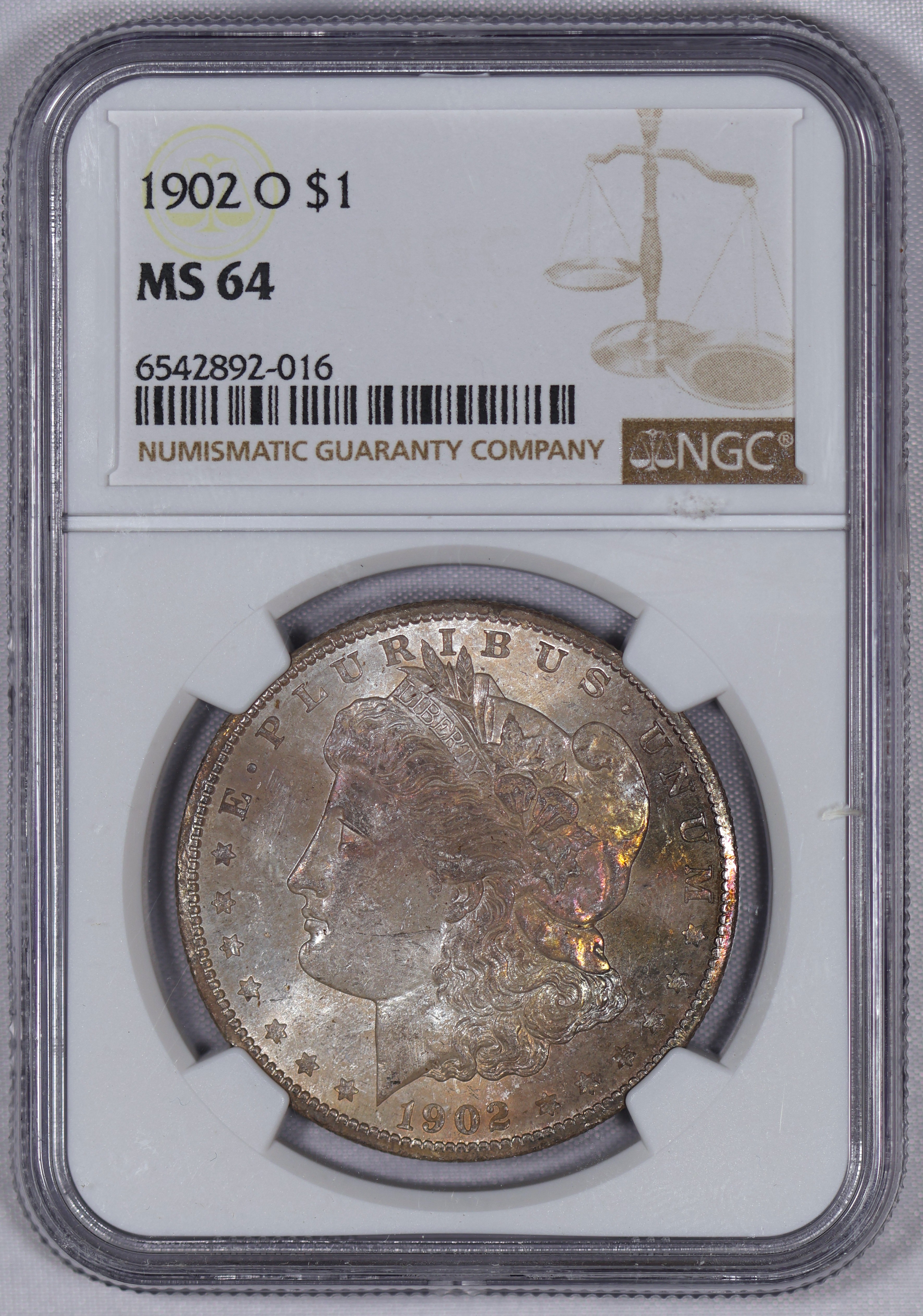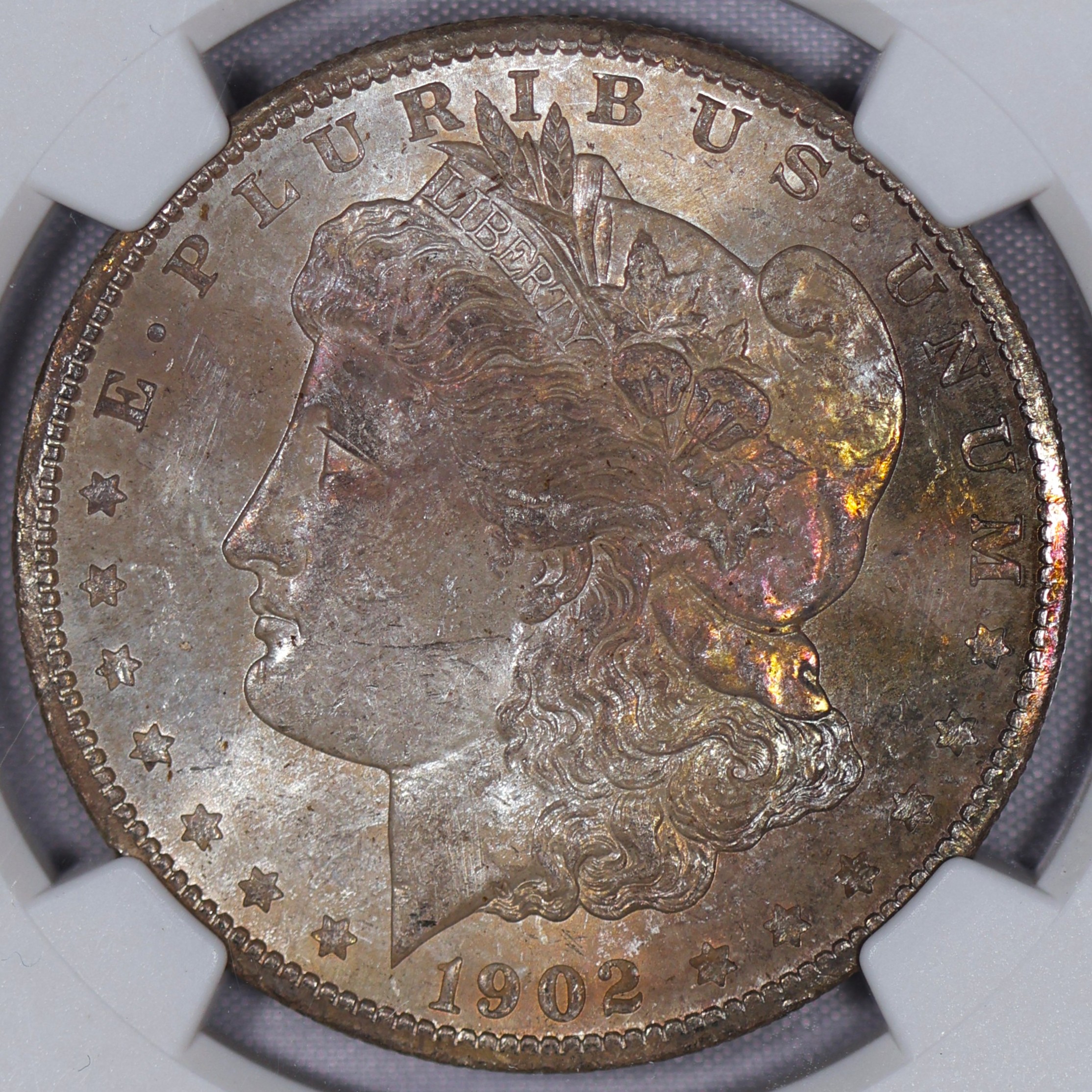 1902 O Morgan Dollar MS 64 NGC Ghost Rainbow TONED