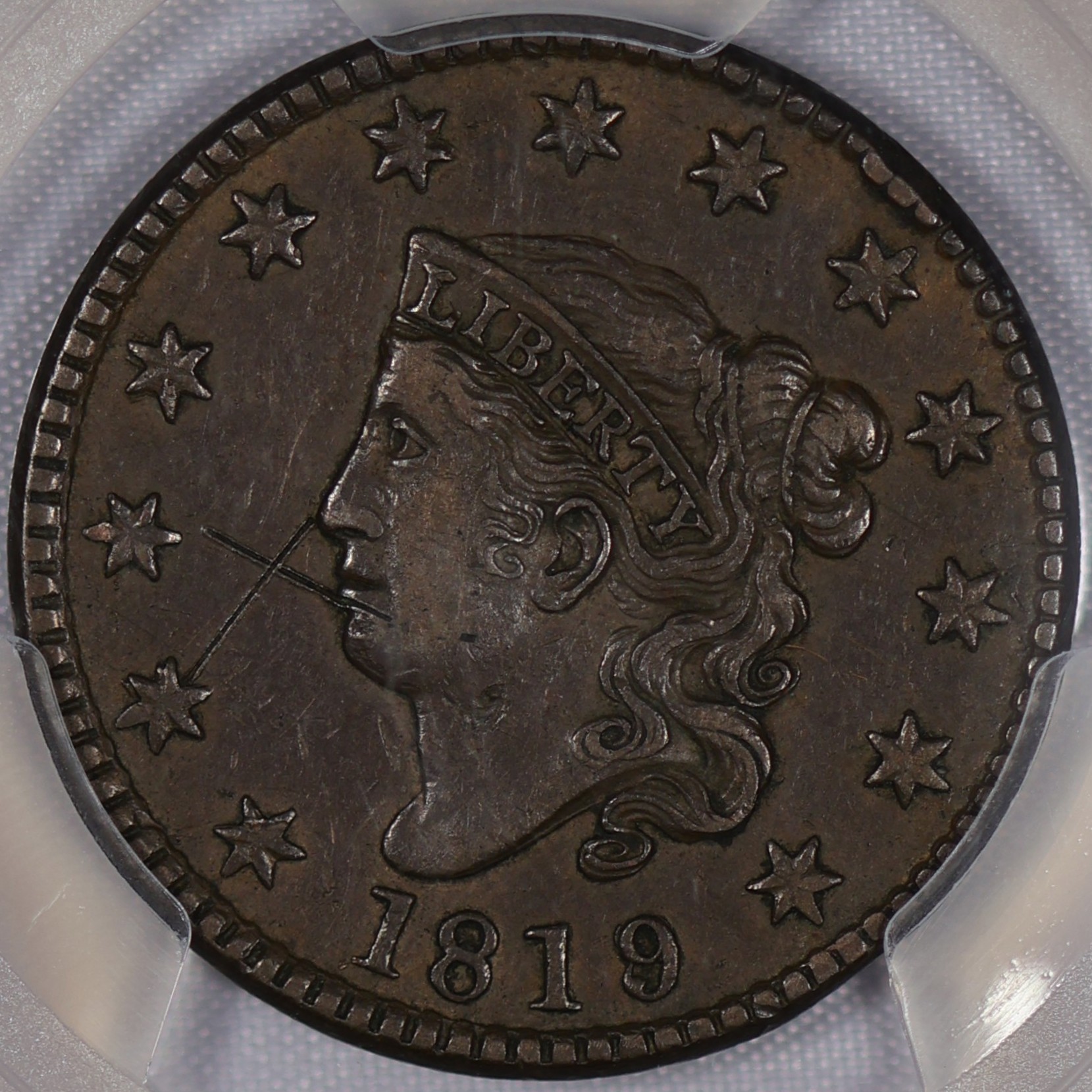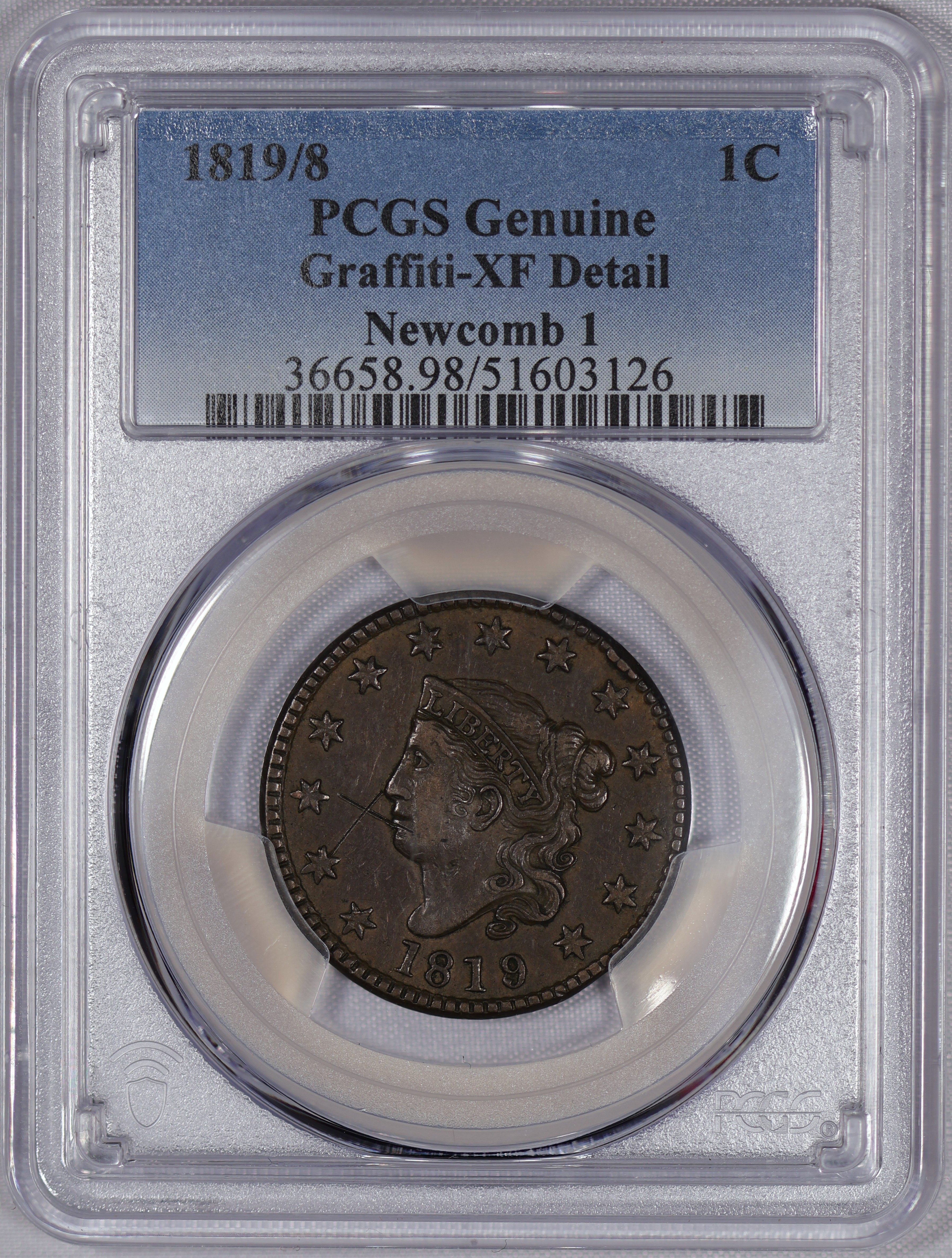 Very choice XF with a coveted variety. There is graffiti on the front, but it does not distract too much from the beuty of this early date cent.