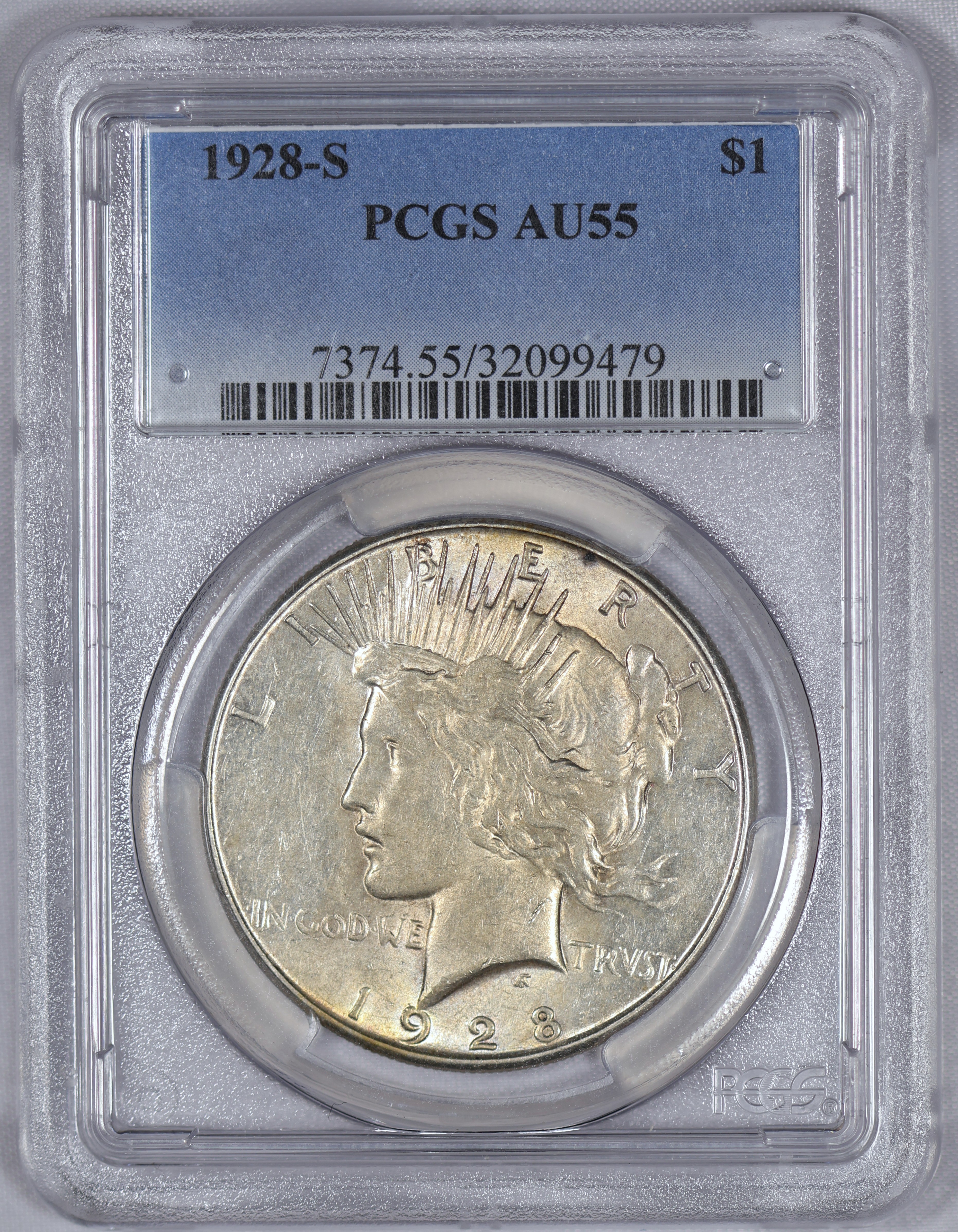 1928 S Peace Silver Dollar AU 55 PCGS KEY DATE