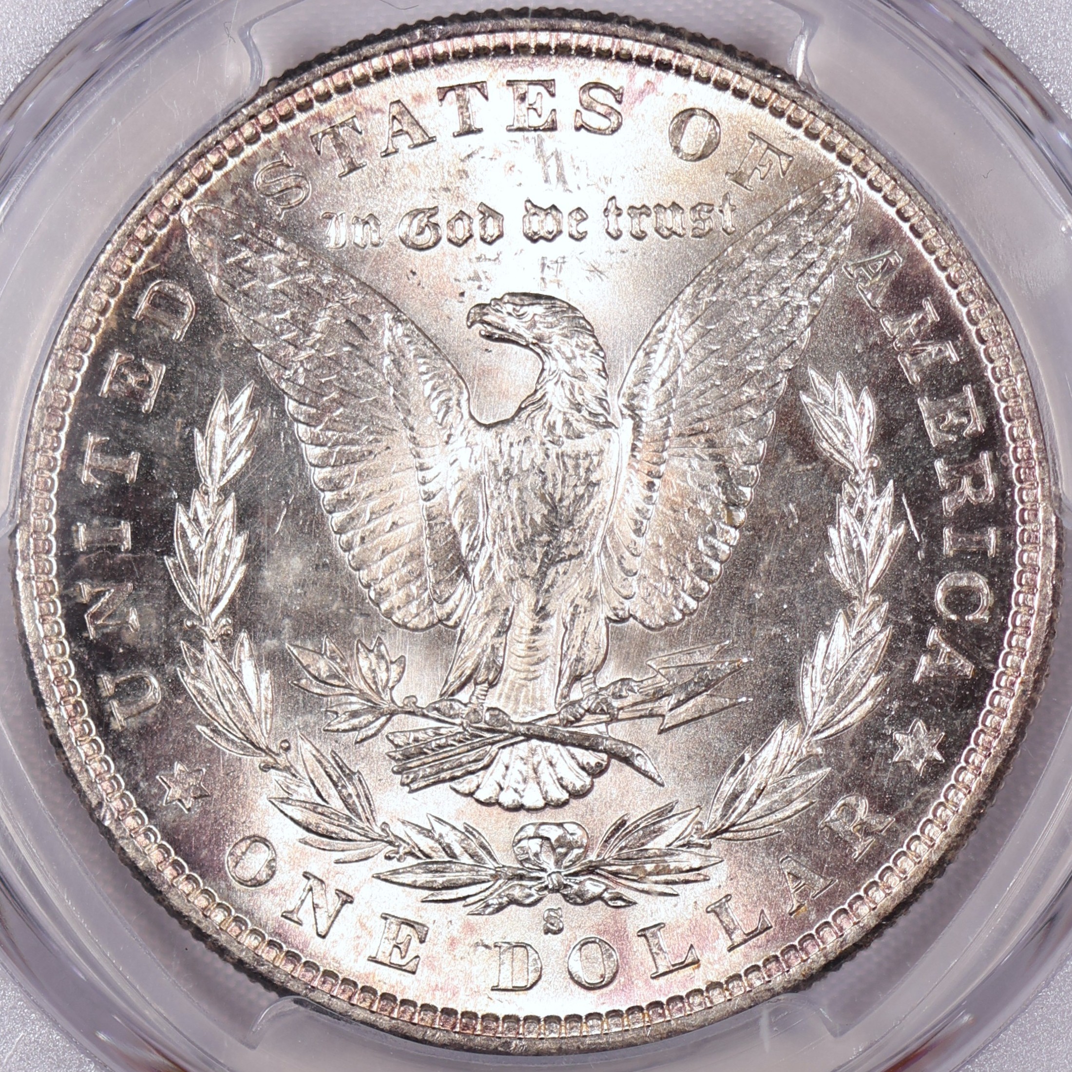 Cartwheel luster, 6 inch mirrors and a frosty devices the San Francisco mint is known for. Superb example!