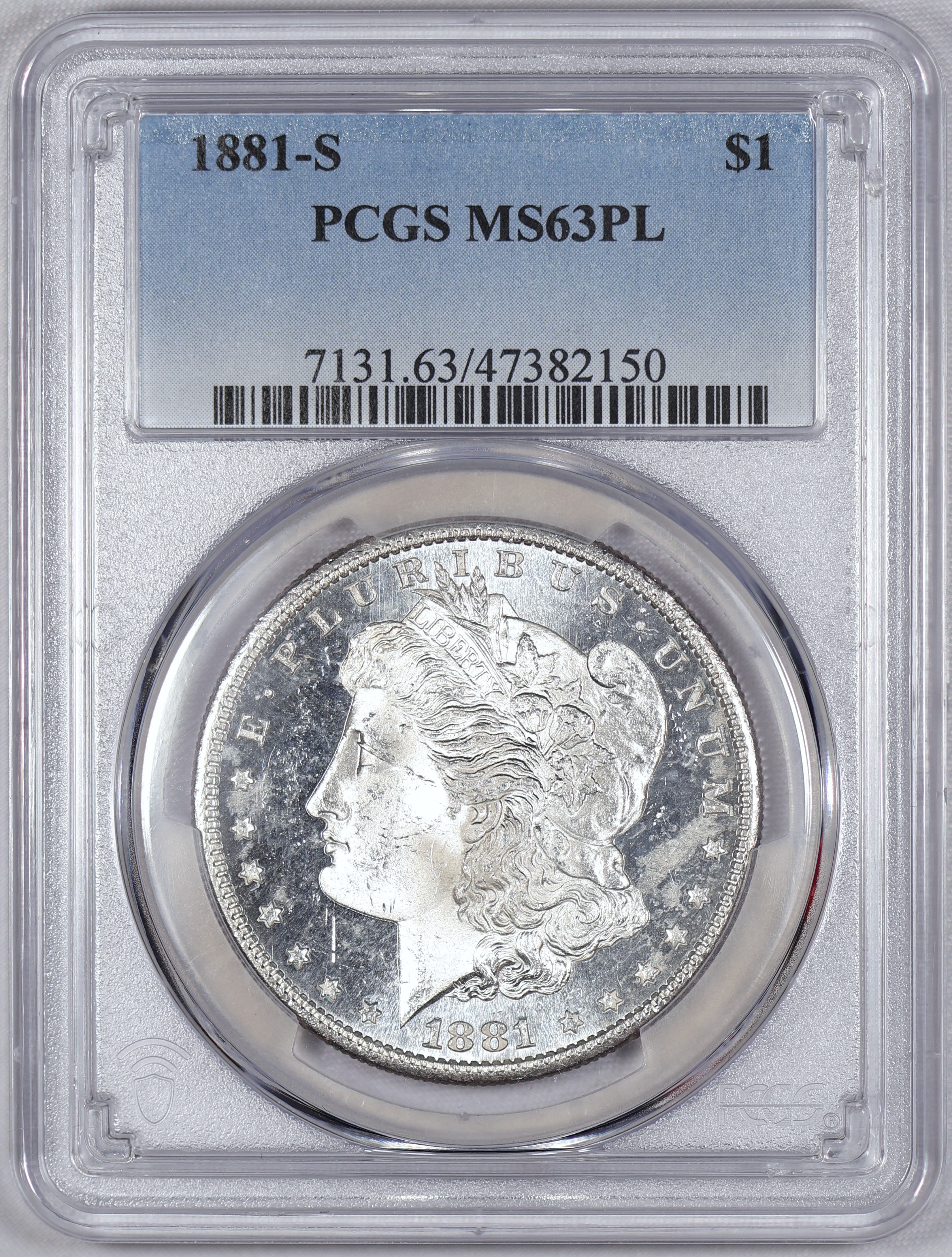 1881 S Morgan Silver Dollar MS 63 PL PCGS