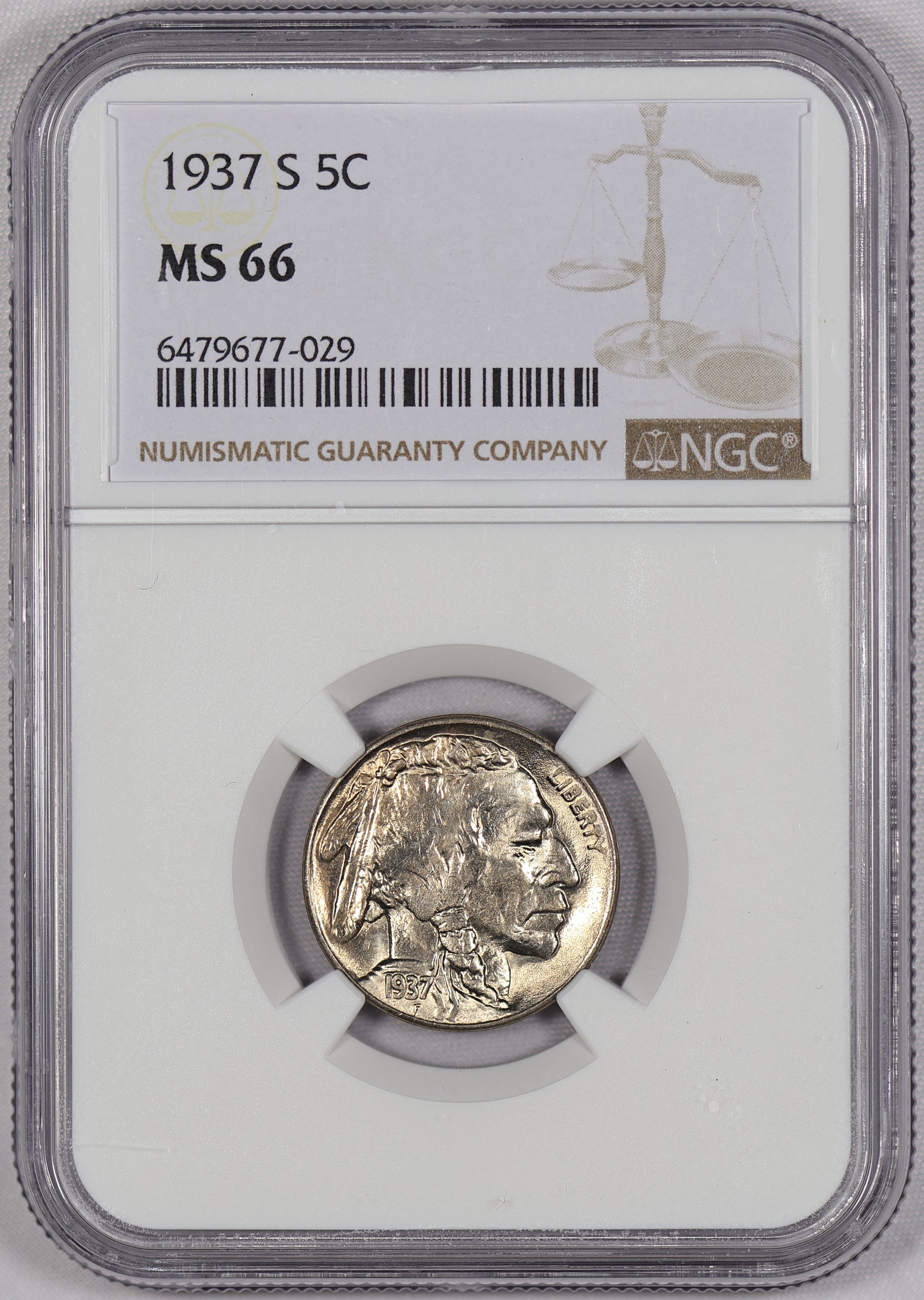 1937 S Buffalo Nickel MS 66 NGC BRIGHT!