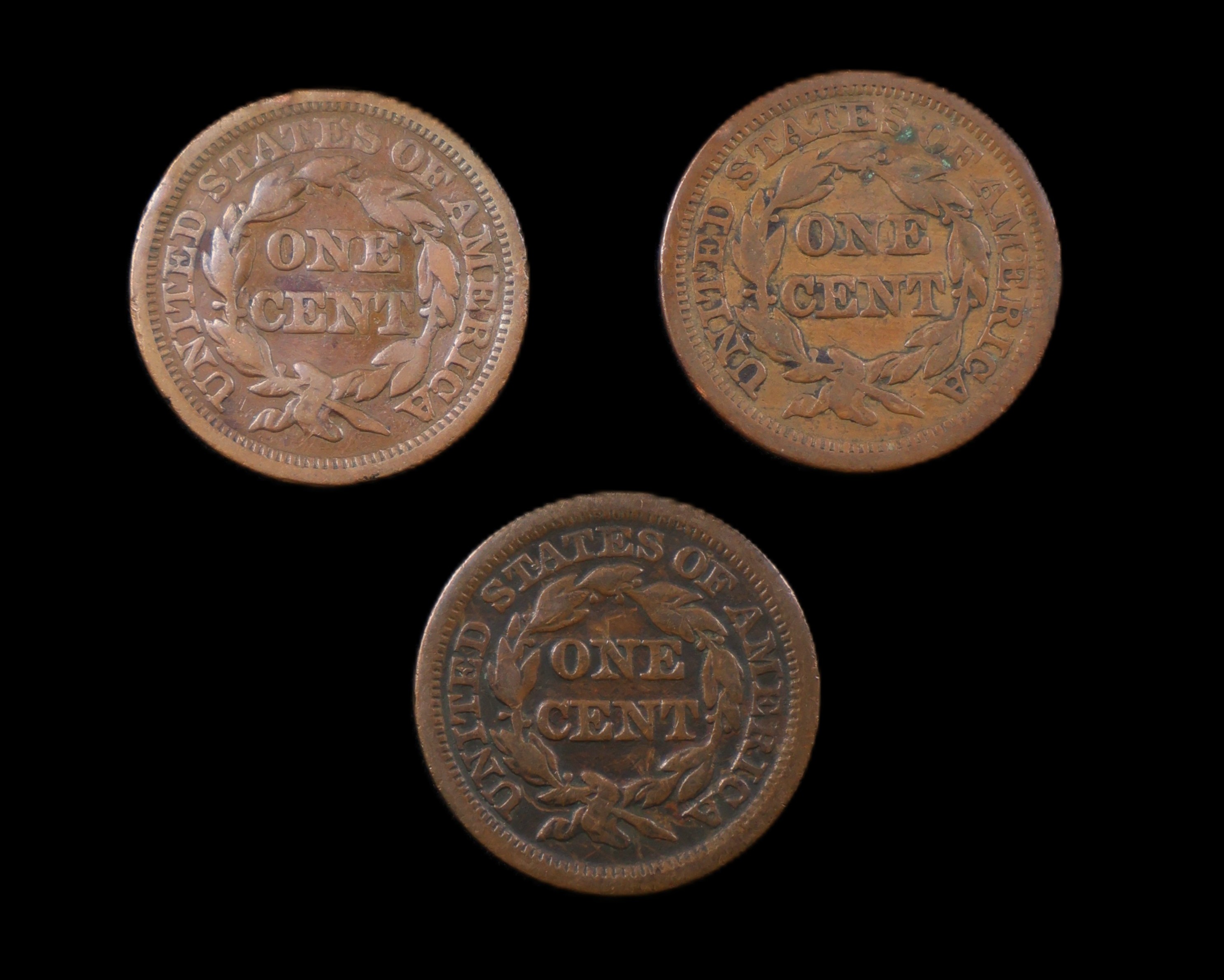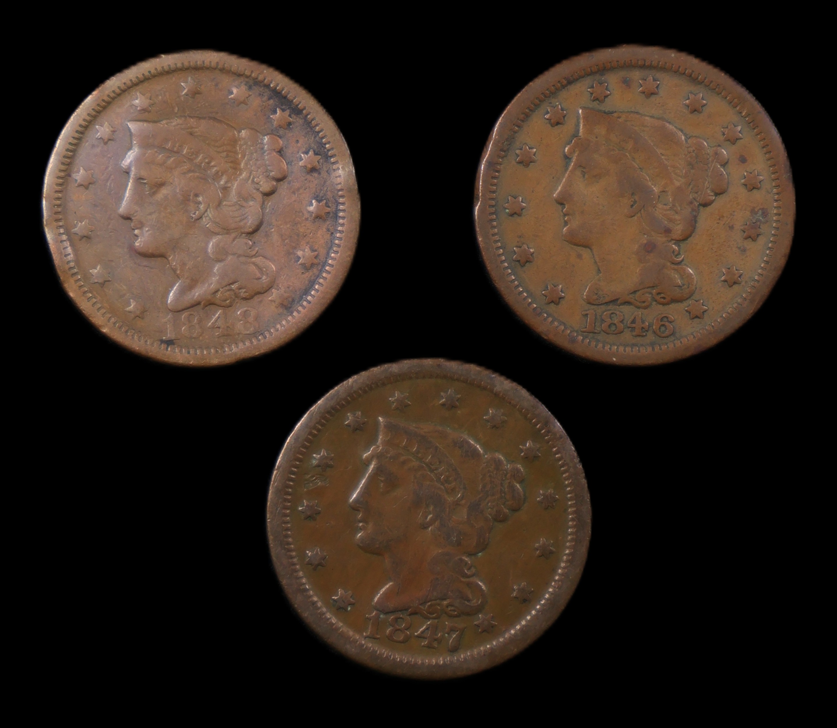1846 - 1848 Braided Hair Large Cent Run Lot (3)