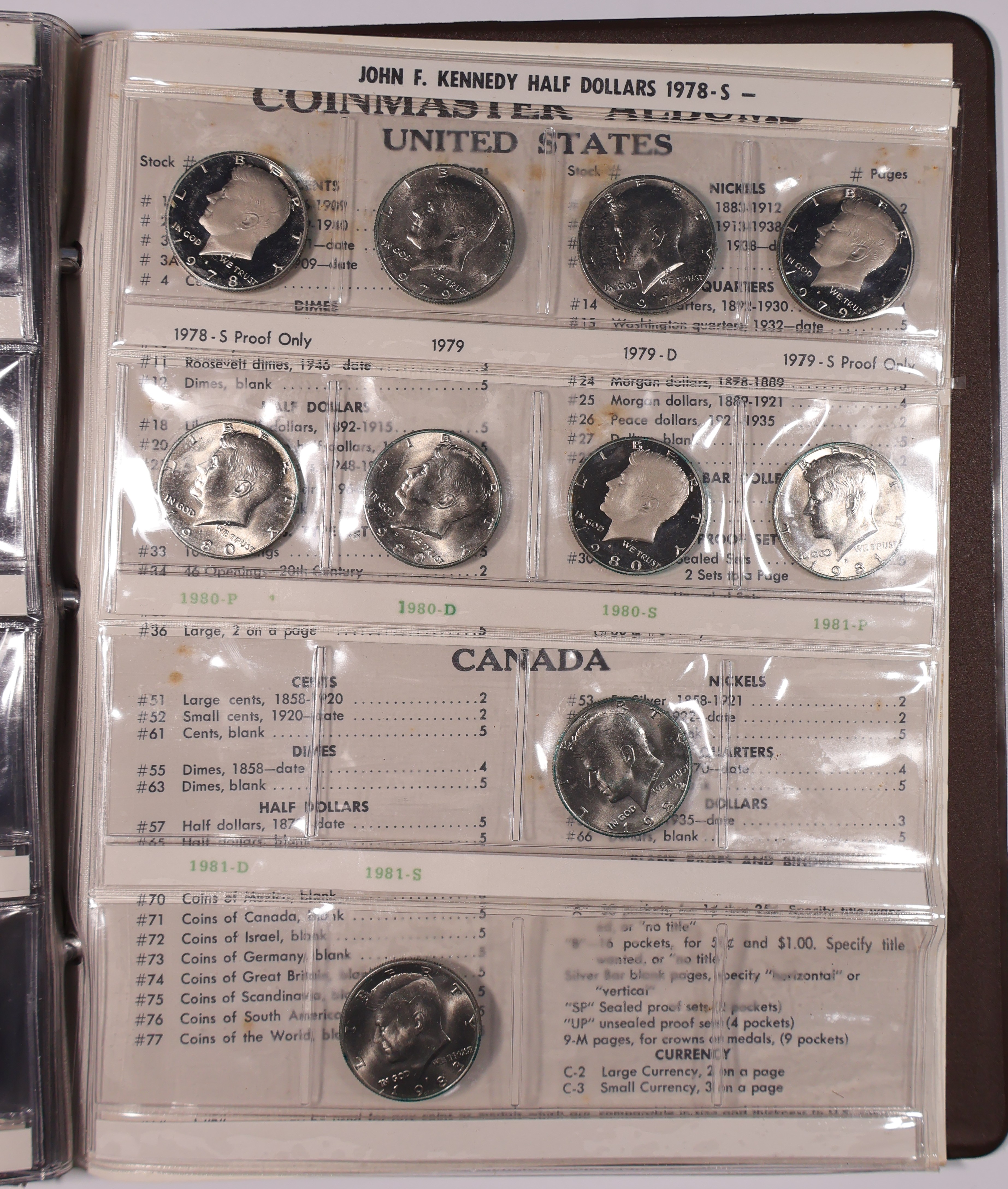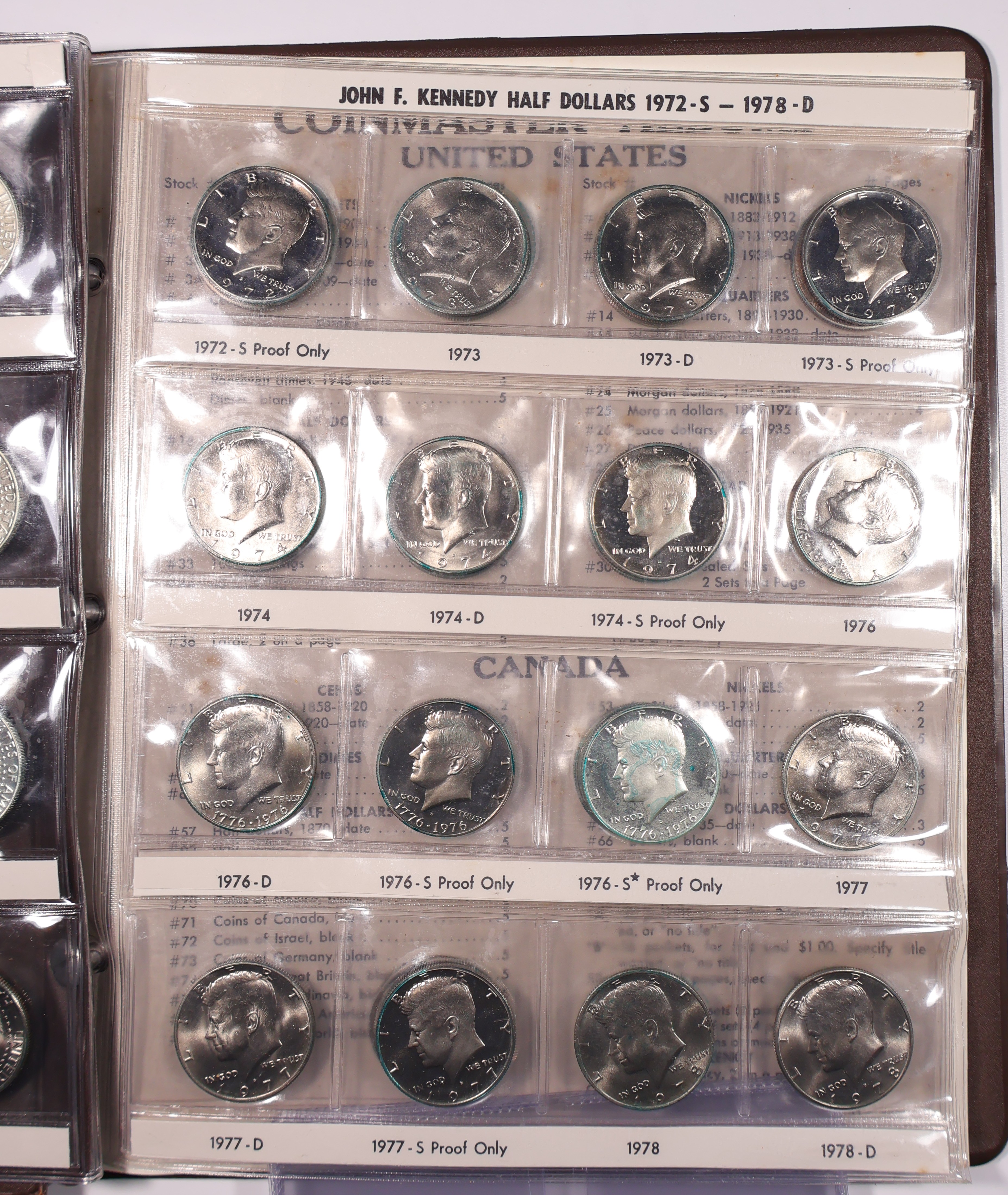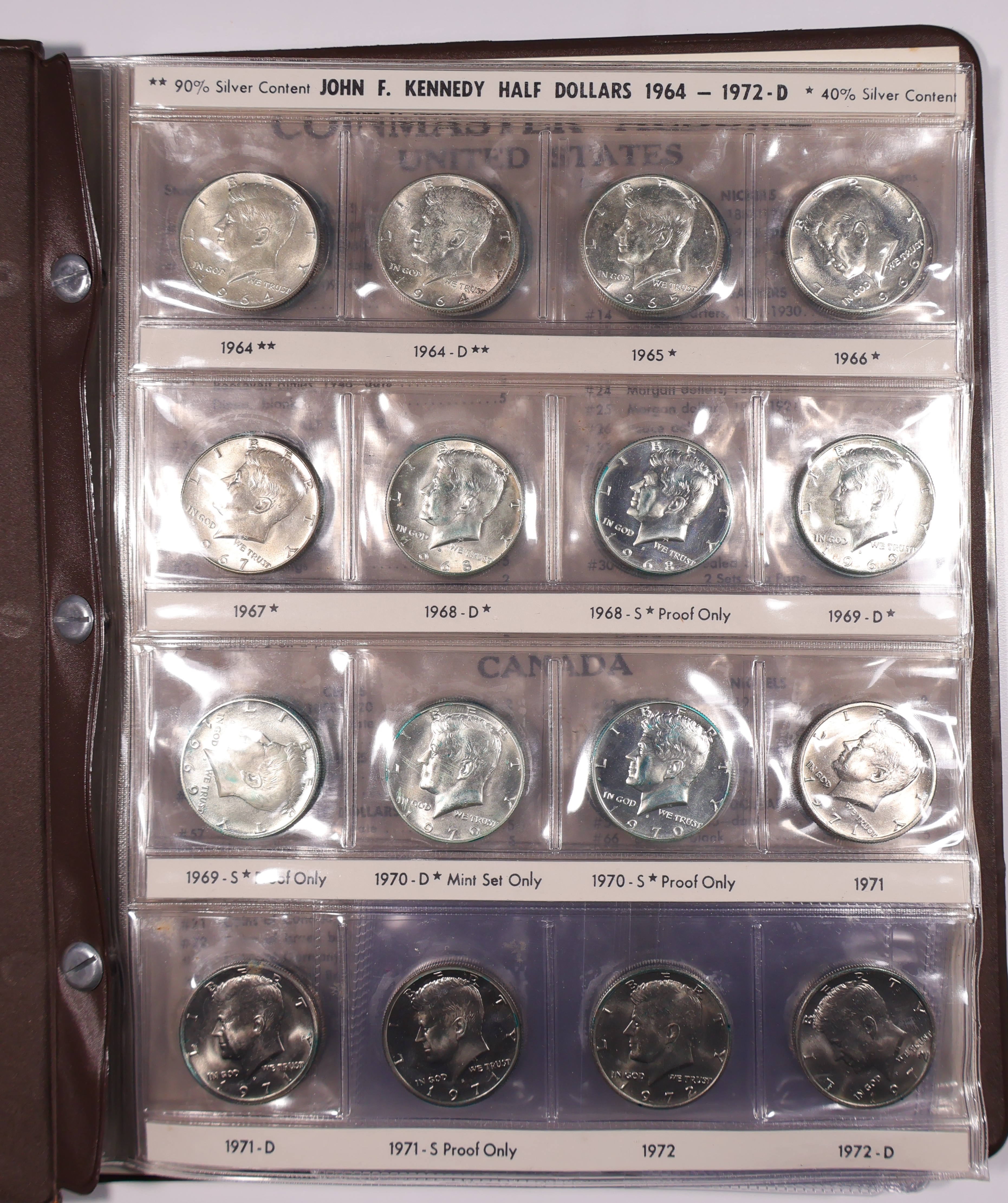 Early Coinmaster album with many superb grade examples. 90% and 40% silver included. Varying degrees of PVC deterioration on several coins. Still a very nice set!