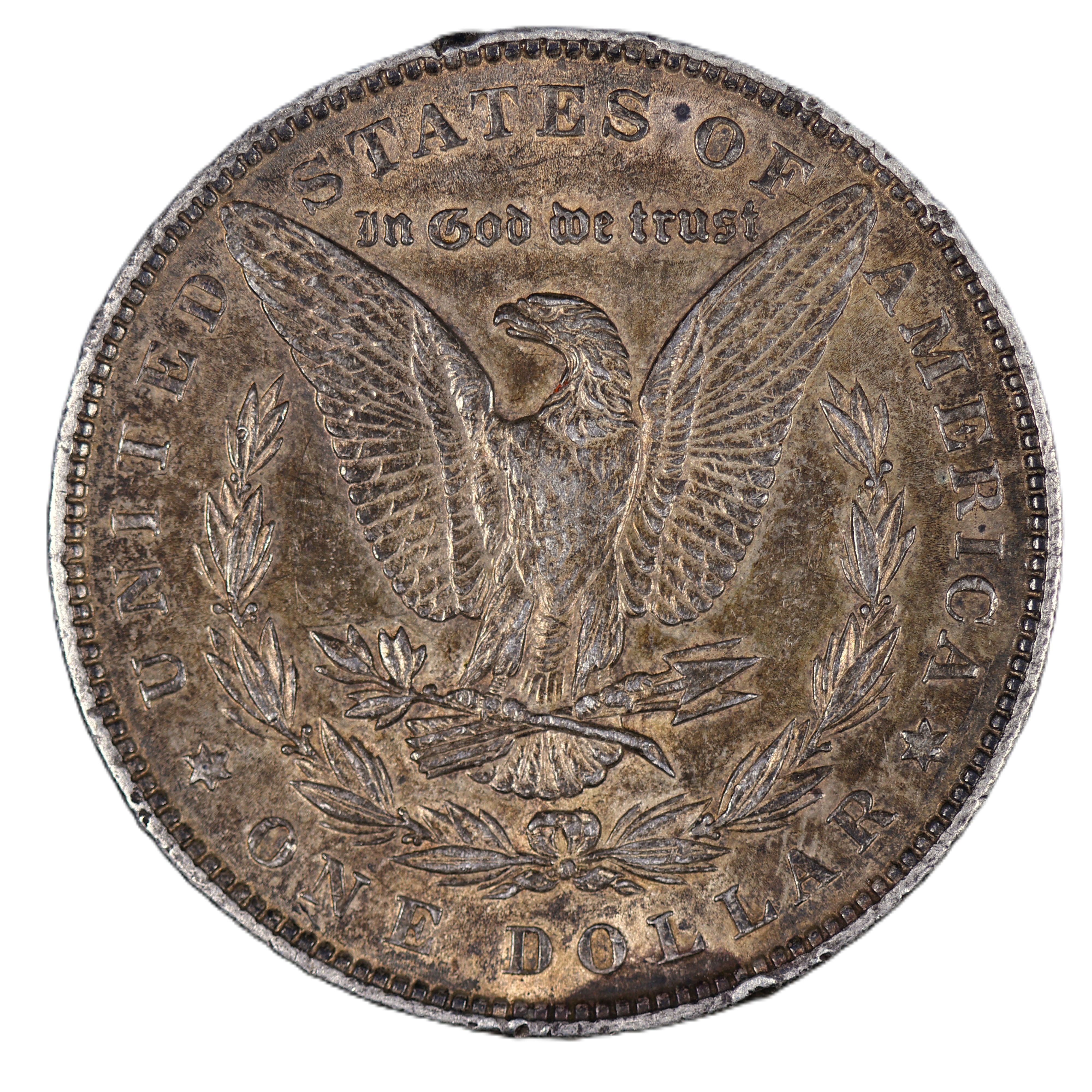 RARE full terminal toned obverse. Exhibits glossy features only gained when the silver oxide layer is extremely thick. A favorite among discerning toner collectors. A few dings.