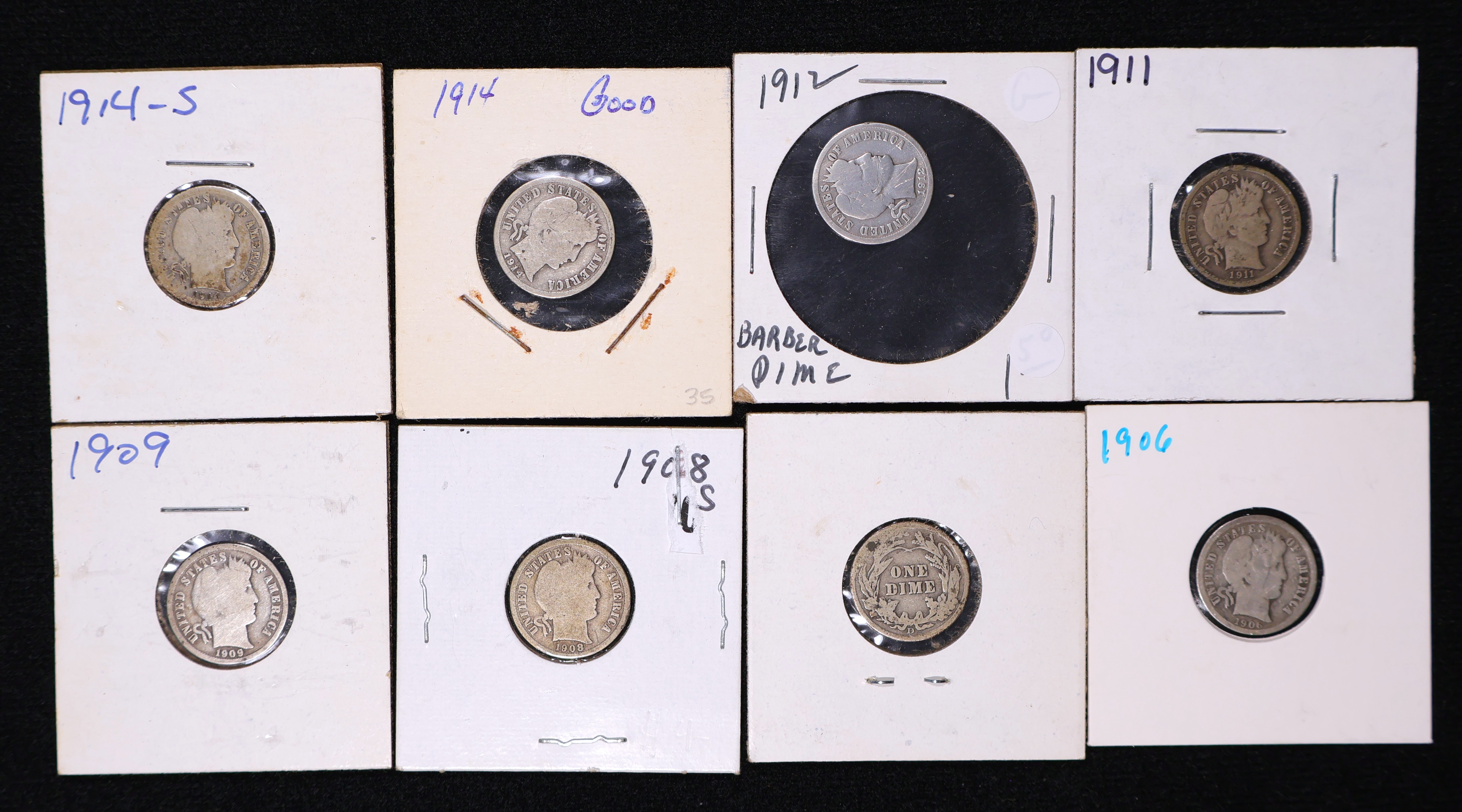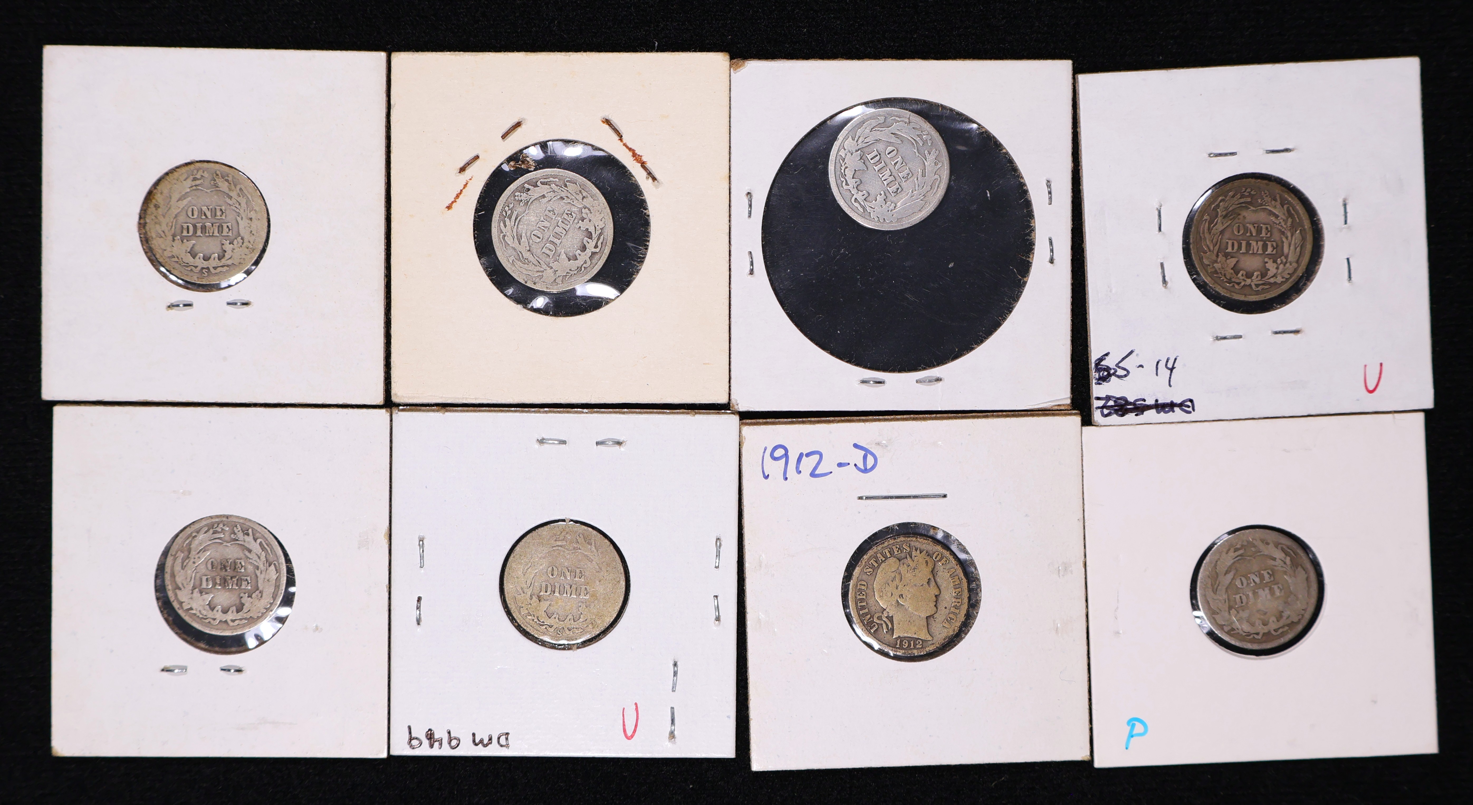 (8) Barber Silver Dime Fine to Good Lot