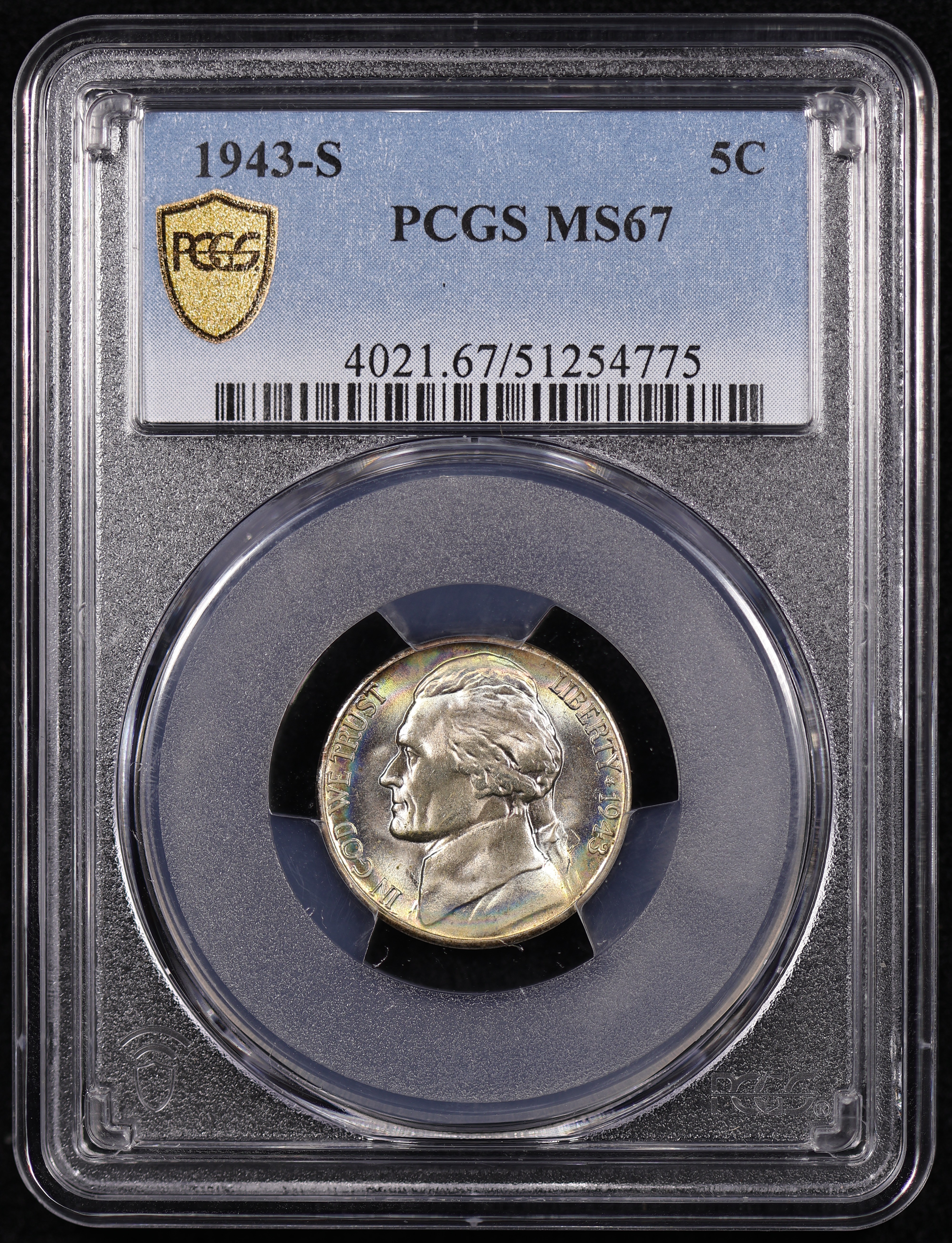 1943 S Jefferson Silver War Nickel PCGS MS 67 TONED
